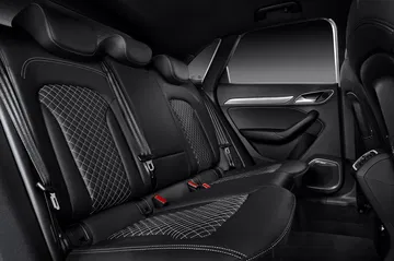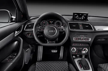 El coste añadido sobre el 2.0 TFSI de 211 CV es importante, incluso si tenemos en cuenta el equipamiento de serie de este Audi RS Q3. Originalmente está dotado con asientos deportivos con apoyo lumbar regulable en cuatro posiciones y tapizado de cuero y Alcantara, que opcionalmente puede sustituirse por un cuero napa completo. Las inserciones son de lacado negro brillante, aunque también podemos recurrir opcionalmente a el aluminio cepillado y a la fibra de carbono.