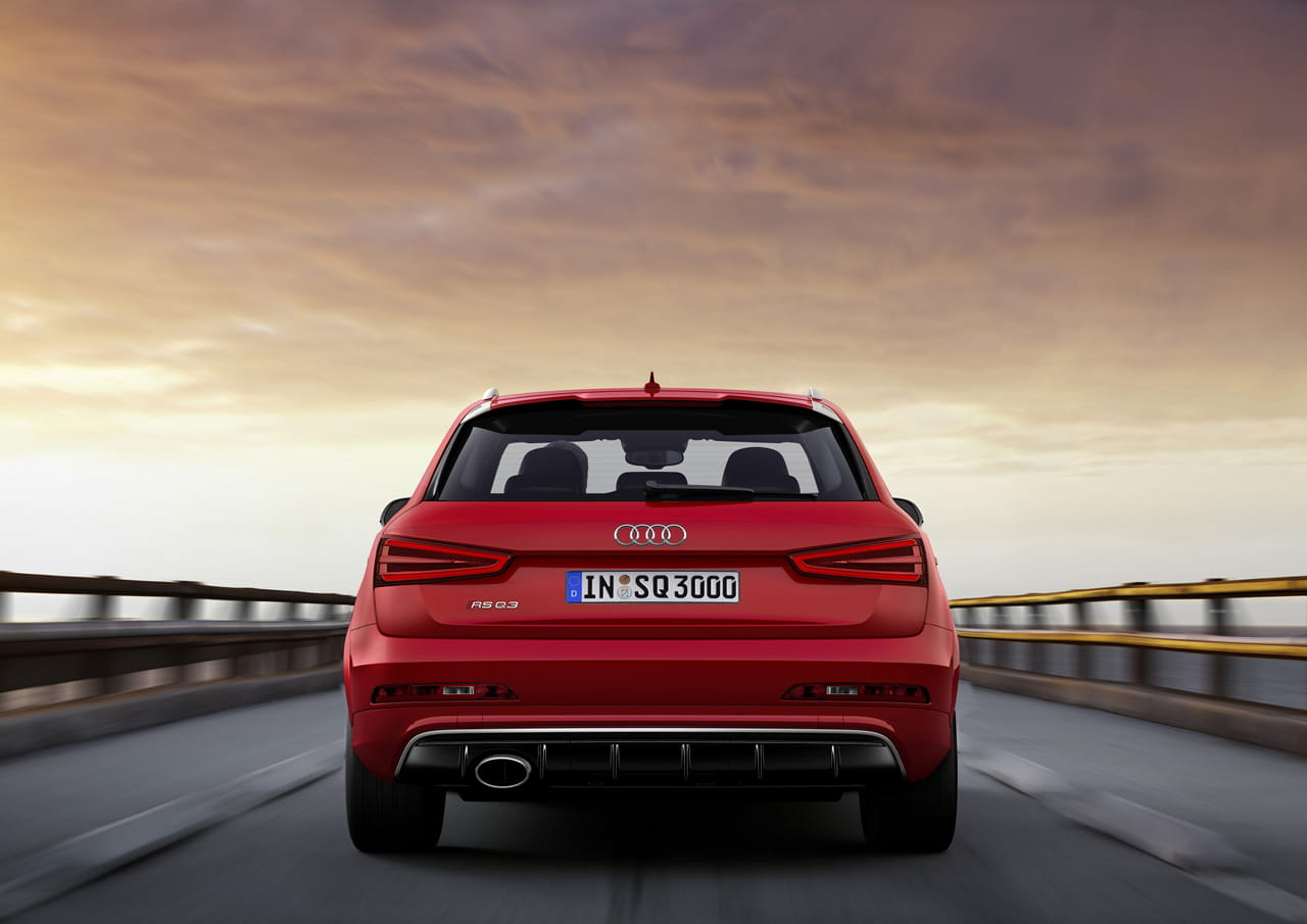 El toque diferencial del Audi RS Q3 no solo llega de la mano de sus prestaciones y de su mecánica, sino también de su estética. Aunque preserva las líneas del Q3, el carácter más deportivo lo acentúan sus agresivas defensas, la gran parrilla frontal y la denominación quattro en el área inferior o sus llantas. En España partirá con una llanta de 18” y opcionalmente de 19” (que en Alemania es de serie) o incluso de 20” con dos diseños: rotor de cinco brazos en titanio mate o negro mate y cinco radios dobles con acabado titanio mate.