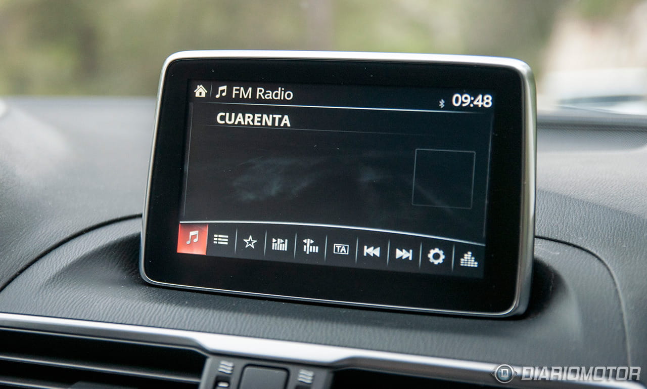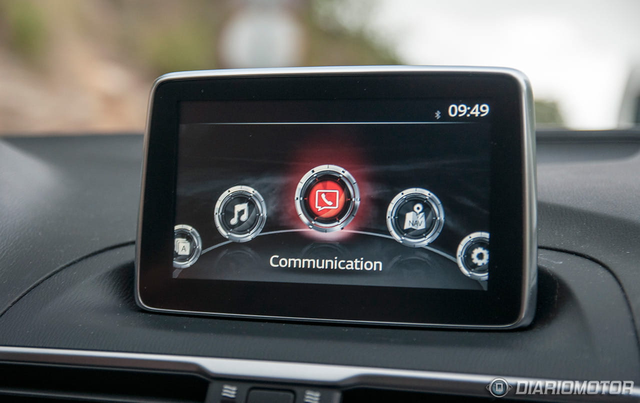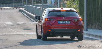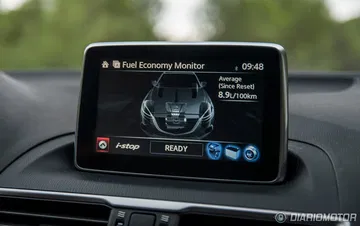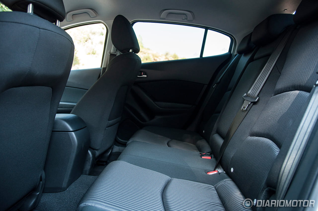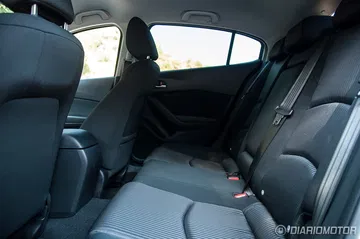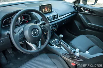 La misma sencillez que se aprecia en el habitáculo está presente en el cuadro de mandos, sorprendentemente minimalista teniendo en cuenta algunas propuestas recientes en rivales del segmento compacto (véase Volvo V40). En el Mazda 3 1.5 de 100 CV comprobamos que el velocímetro analógico, centrado, estaba flanqueado por dos pantallas digitales laterales para mostrarnos la revoluciones (izquierda) y el ordenador de a bordo (derecha). Me dejó más satisfecho el cuadro de mandos de un Mazda 3 2.0 de 120 CV Automático que probé posteriormente con la esfera central dedicada a un cuentarrevoluciones analógico y el velocímetro digital. Es cuestión de gustos.