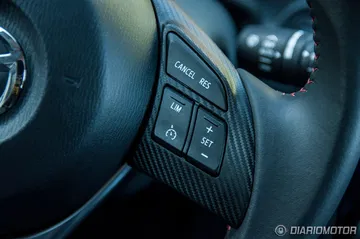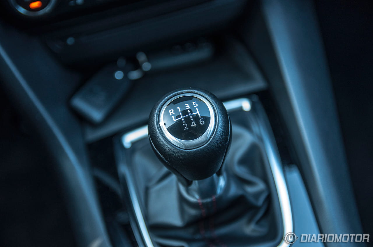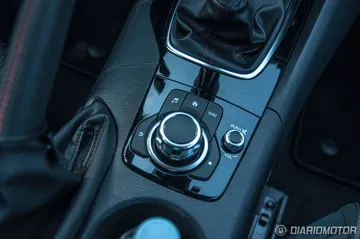 Buen trabajo de Mazda con la ergonomía y no solo por lo cómodos que me resultaron sus asientos de tela de serie. La base del asiento puede situarse a una altura relativamente baja, y también el volante, sin perder visibilidad (un servidor es bajito, no llega a 1,70 metros de altura). Tal vez esa sea la posición ideal para manejar los pedales simétricos y con acelerador anclado al suelo, de tabla. Tan solo me lamento por las dificultades que encuentro a la hora de ajustar el respaldo con la inclinación idónea mediante un sistema de palanca (sin la precisión de un sistema con ruleta giratoria), más aún teniendo en cuenta que no viajo solo y que en esta prueba intercambio la posición del conductor con el compañero que me acompaña cada pocos kilómetros.