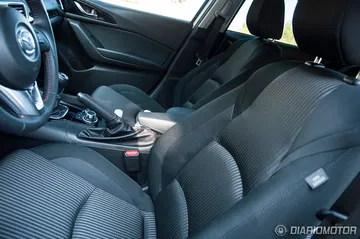 Mazda nos confiesa que se han propuesto mejorar la calidad de los materiales y los acabados. La calidad percibida es excelente, materiales mullidos en la superficie del salpicadero y revestimientos que sin ser nobles denotan cierta calidad. Incluso, con estos asientos de serie y tapizado completo de tela, tenemos la impresión de estar en un automóvil de cierto nivel. Pero tampoco nos olvidemos de que estamos probando un modelo con acabado Style y que en el nivel inferior, Pulse, tampoco contaremos con un volante y el brazo del freno de mano forrados en piel. Si la referencia está en el Volkswagen Golf (tal y como reconoce Mazda), la calidad percibida de este Mazda 3 está como mínimo a su altura.