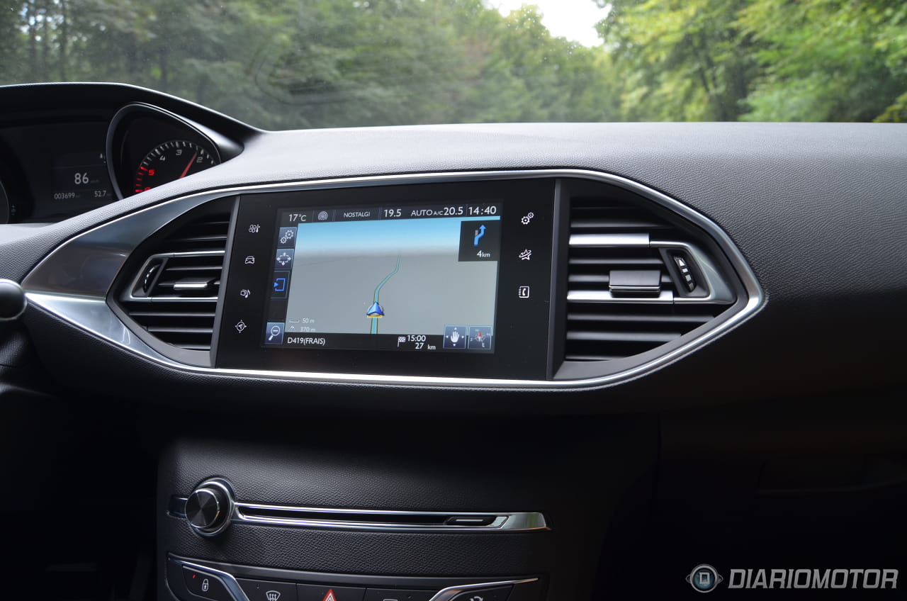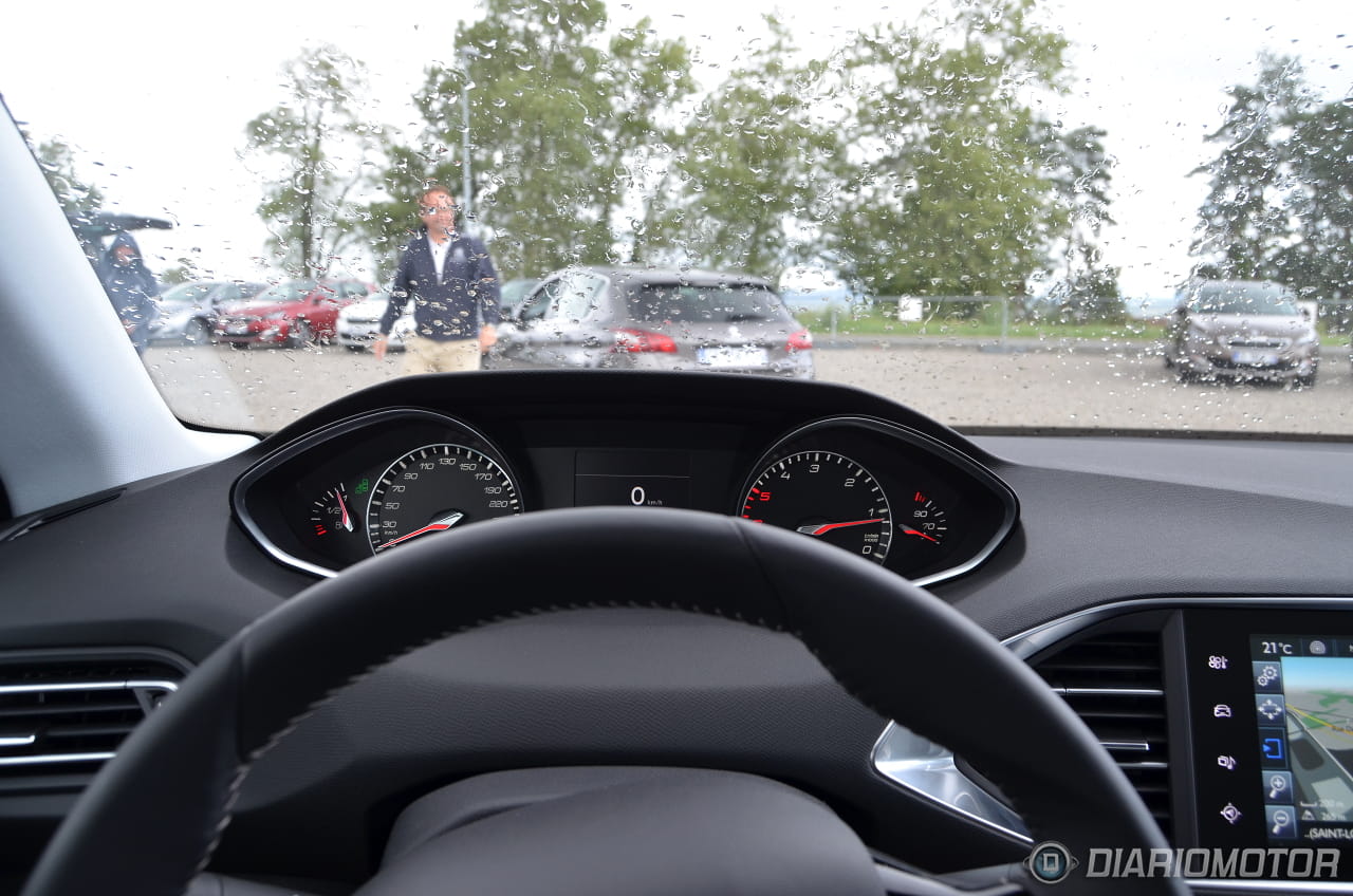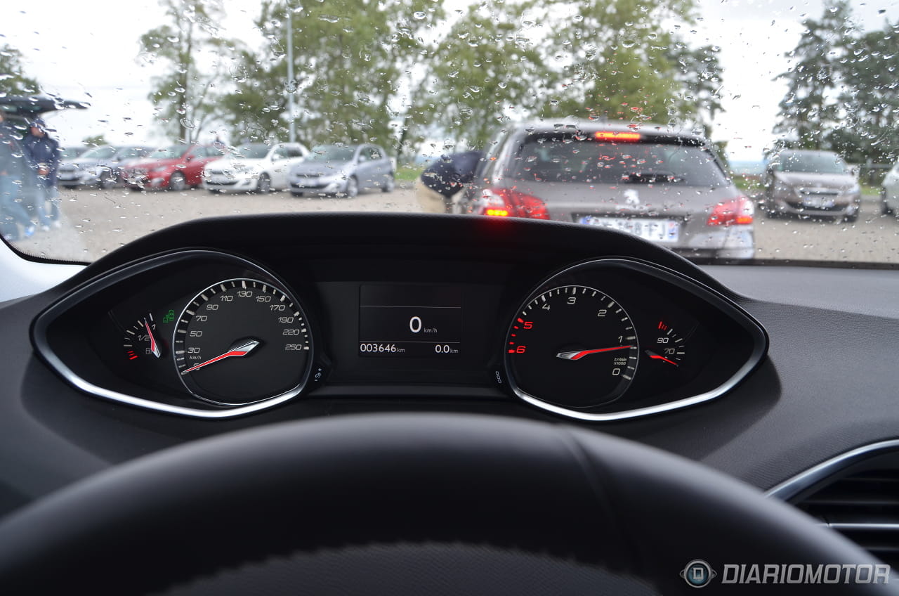 Tras este volante uno de los puntos más críticos, su instrumentación. Su posición retrasada llevó al Peugeot 208 a recibir no pocas críticas al taparse en algunos casos algún detalle de la instrumentación por el volante. En el caso del Peugeot 308 y con mi postura de conducción (midiendo 1.80 metros), el volante queda próximo a la parte inferior de las esferas, pero no oculta ni dificulta la visión de ningún elemento. Al conjunto del puesto de conducción Peugeot lo ha denominado i-Cockpit.