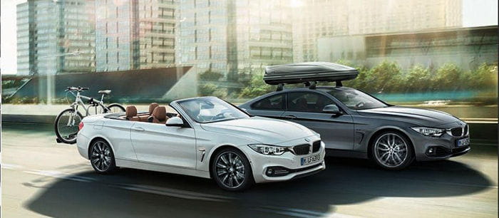 Desde BMWblog nos llega una serie de imágenes que parecen corresponderse con las páginas de un catálogo de accesorios del BMW Serie 4, dejándonos ver al BMW Serie 4 cabrio posando junto al coupé, uno con portabicis y otro con un arcón sobre el techo.