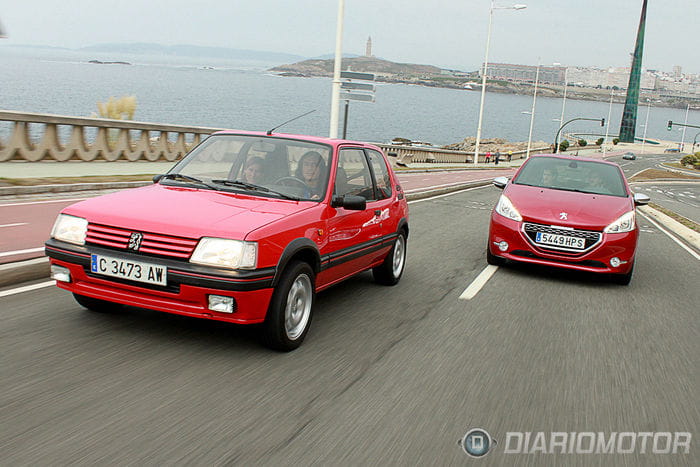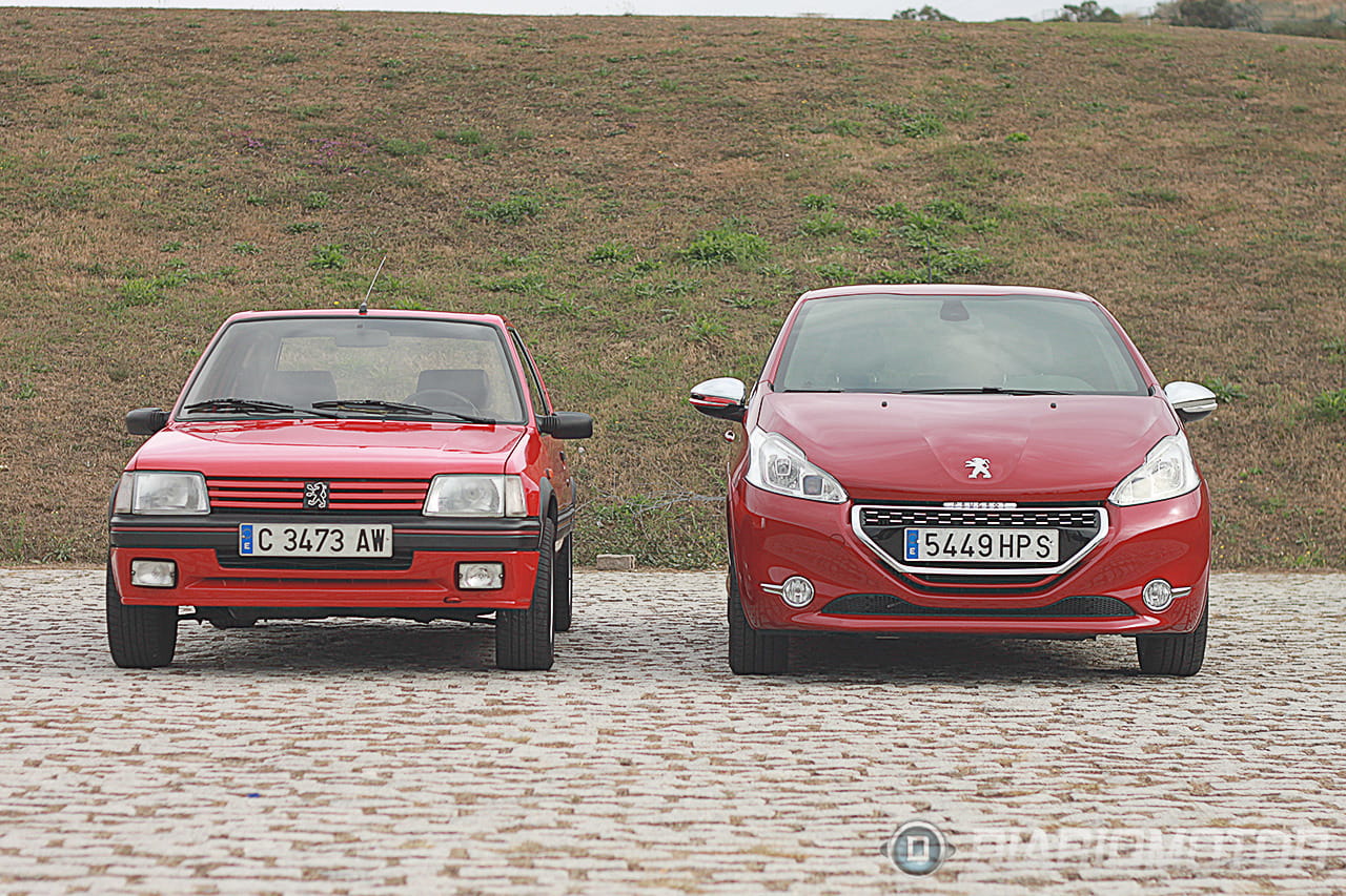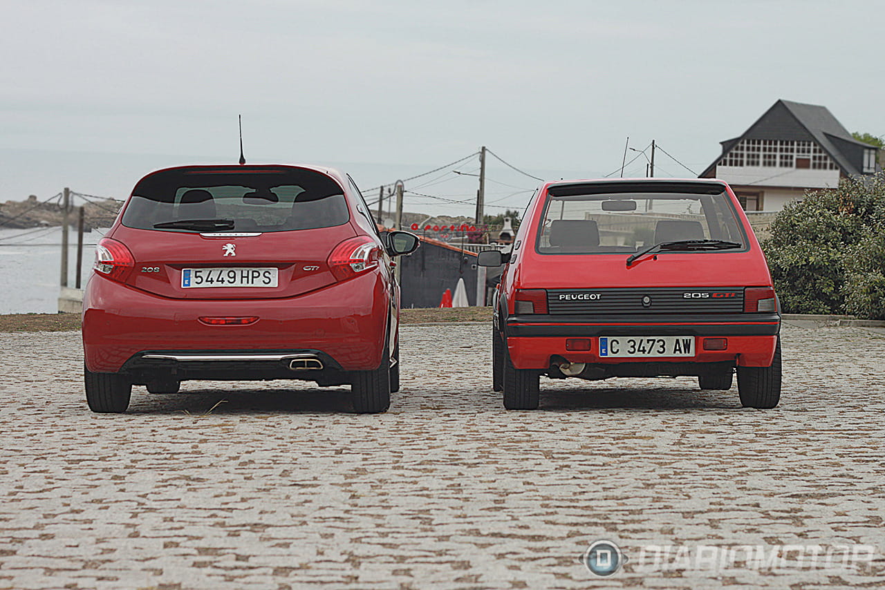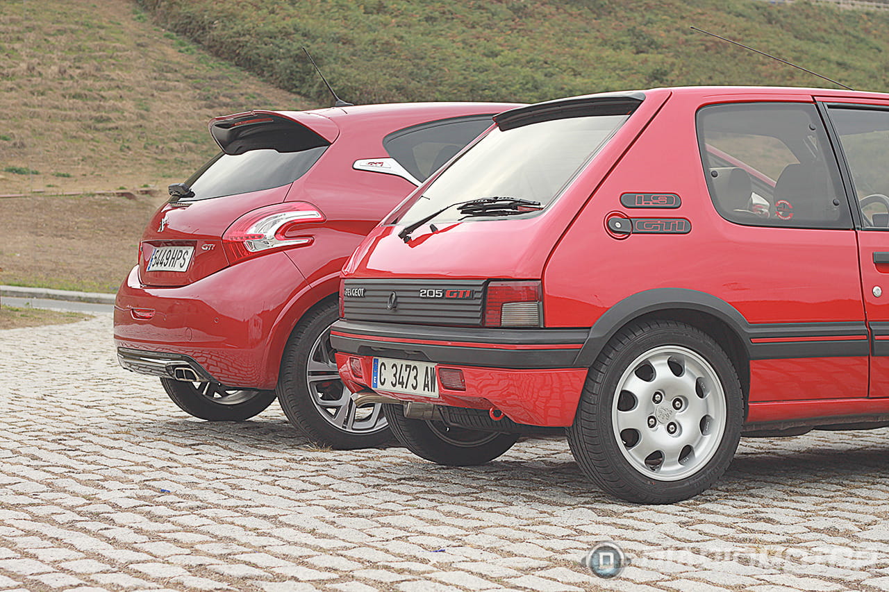 Hace un tiempo nos pusimos en contacto con un amigo que resultó tener en su garaje un Peugeot 205 1.9 GTI de 130 CV (sin catalizar) estrictamente original, comprado y matriculado por él mismo y en perfecto estado de conservación. Ante esta circunstancia y la posibilidad de juntarlo con un Peugeot 208 GTI de 200 CV (de los nuevos) facilitado por Peugeot, entendimos que dos más dos tenían que ser cuatro y había que organizar algo, así que quedamos en Coruña, una tarde templada y nublada, y juntamos ambos coches.