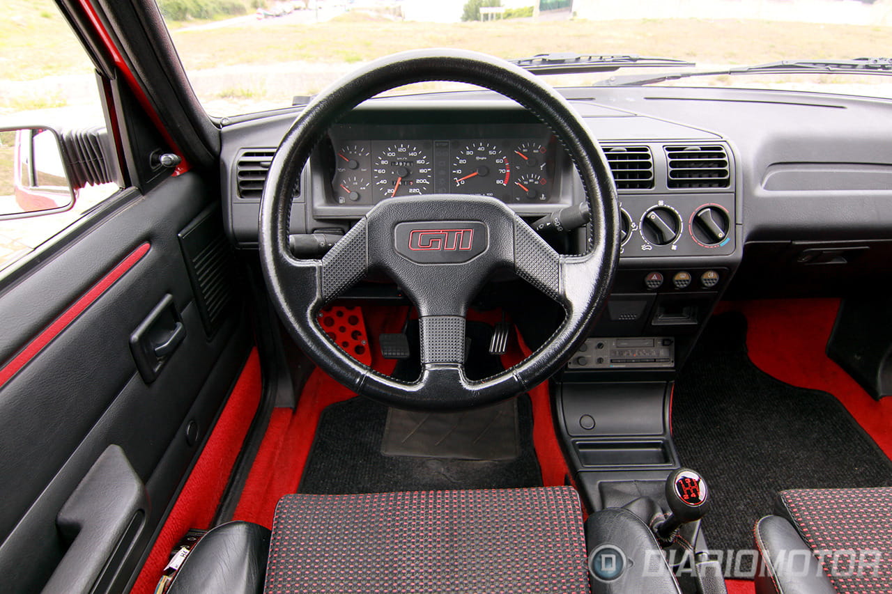 En el cuadro de instrumentos, ubicado tras el fino aro del volante forrado en cuero muy duro, encontramos de nuevo lo esencial (con una tipografía años 80 y una iluminación que deja bastante que desear, todo hay que decirlo) pero todo está en su sitio y es fácil de interpretar. El coche no lleva aire acondicionado (aunque existía como opción) y los mandos de la climatización, que por aquel entonces sólo empezaba a rivalizar con la ventanilla abierta, son comunes (o extremadamente similares) a los de un Citroën BX de segunda generación.