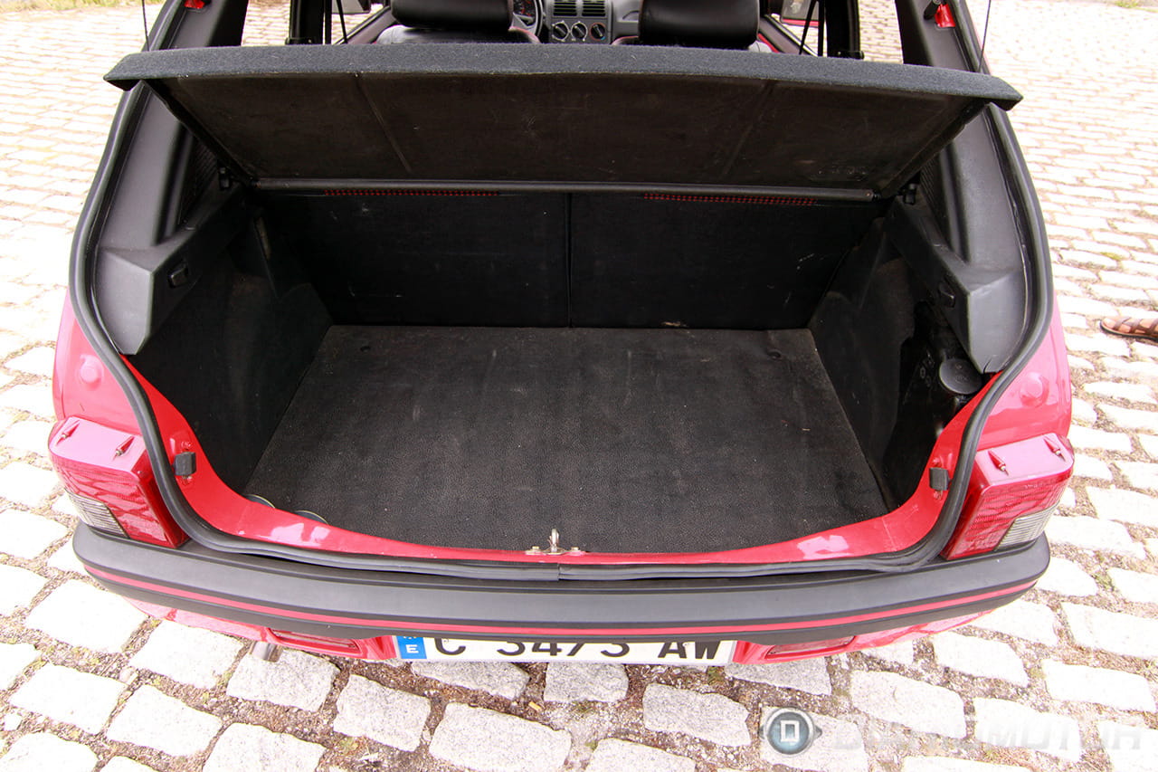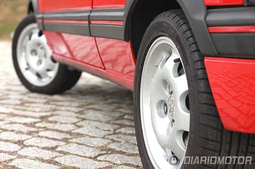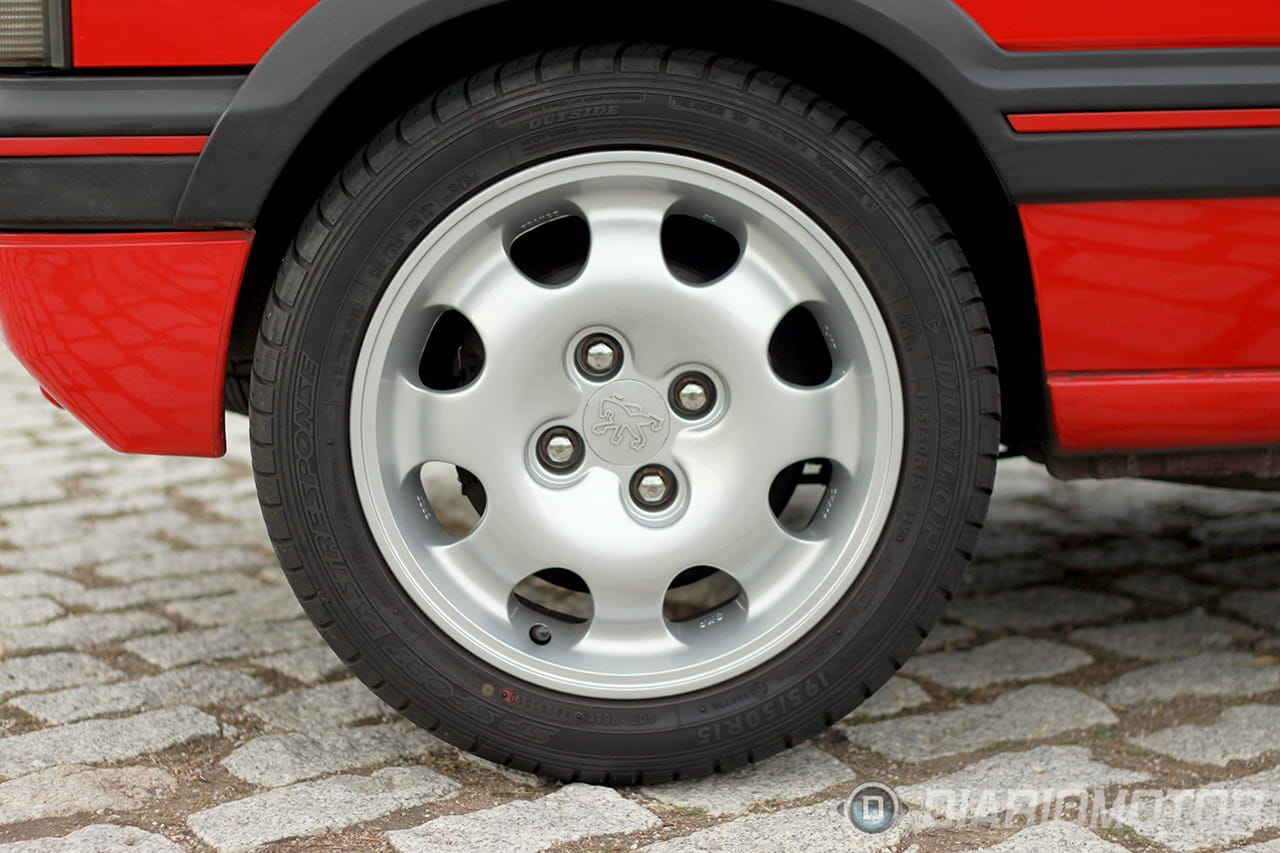 Tal vez sean las llantas lo más llamativo. Con neumáticos 195/50 R15 (unos ruedones en aquel momento) la llanta se hace grande y el perfil bajo, a pesar de que ahora se llevan neumáticos bastante más extremos (el 208 GTI calza unos 205/45 R17, aunque también tiene mucha más potencia).