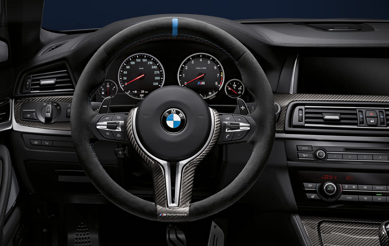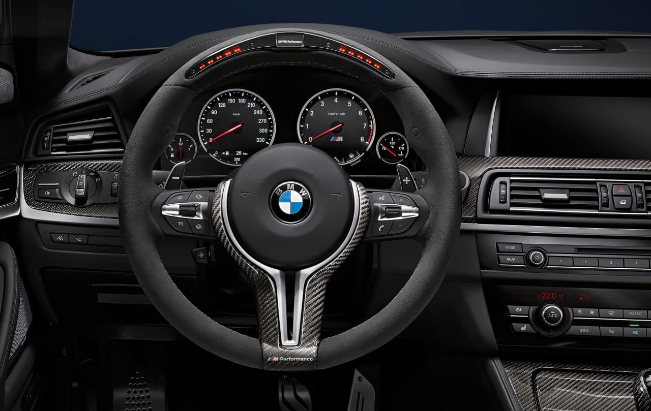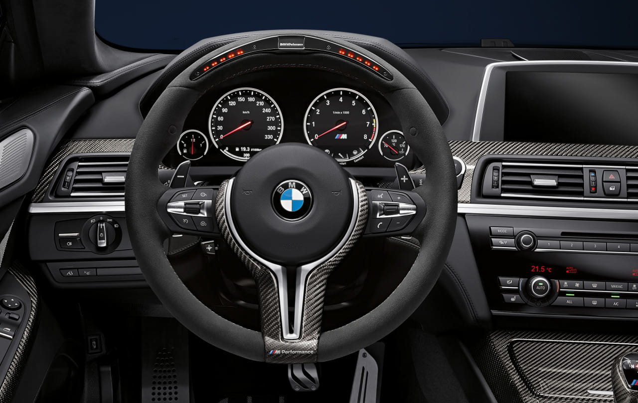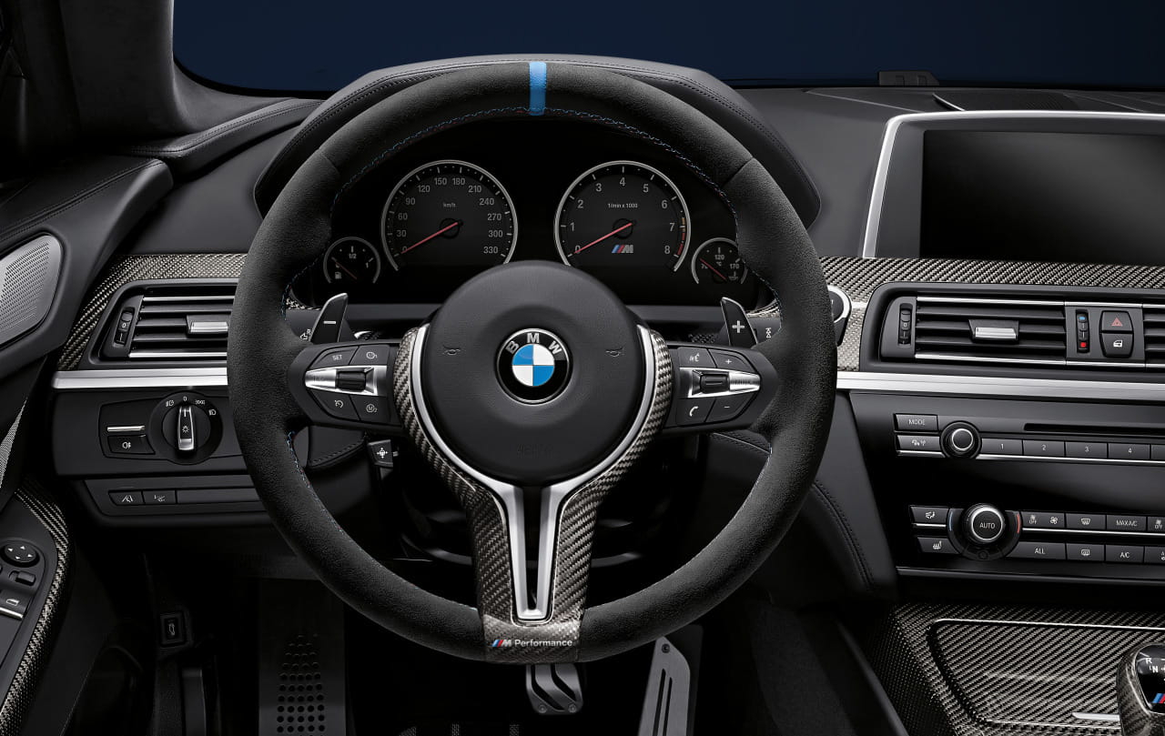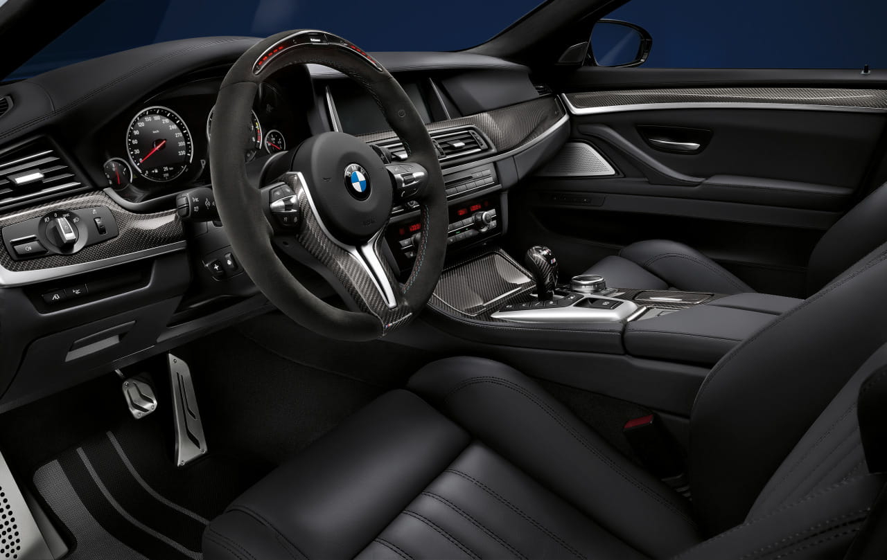 En el habitáculo la fibra de carbono sigue totalmente presente con un nuevo acabado para la palanca del cambio. Se añade a las opciones unos nuevos pedales de aluminio, mientras que el volante también pasa a ser objeto de cambio, encontrándonos con el M Performance Steering Wheel, un volante deportivo en el que se añaden funciones como el indicador de cambio de marcha tipo F1, fuerzas G, tiempo por vuelta… gracias a una pantalla oled presente en su parte superior.