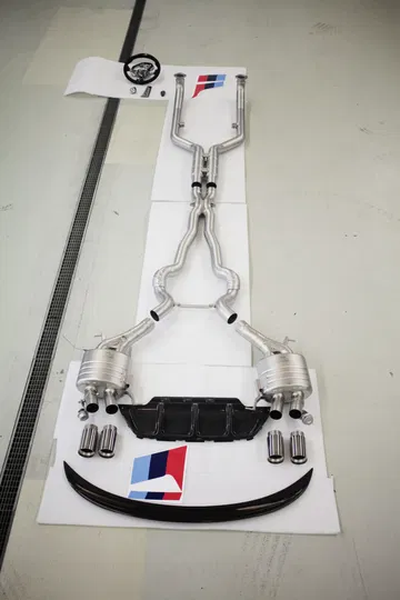 En este nuevo catálogo de “regalos para tu BMW” nos encontramos con un nuevo sistema de escape realizado en titanio en colaboración con Akrapovic, que además de mejorar el sonido consigue reducir el peso final del conjunto en 10 kg. Siguiendo con el lado más mecánico del catálogo no falta la atención a los frenos con un sistema carbocerámico que ahorra al M5 y M6 un total de 19.4 kg, ofreciéndose en conjunto con unas llantas de 20 pulgadas.