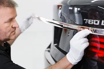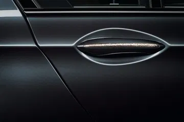 Exteriormente no hay cambios “de forma” respecto al BMW 760Li convencional, pero a primera vista ya se nota que hay algo diferente en el coche. Efectivamente, numerosas partes de la carrocería llevan inserciones en plata martillada: los riñones de la parrilla frontal, la aleta lateral, las manetas de las puertas, las letras que identifican la versión en la zaga y las salidas de escape están fabricadas en ese material. Para más exquisitez, los logotipos de BMW tienen han sido esmaltados por los empleados de ROBBE & BERKING.