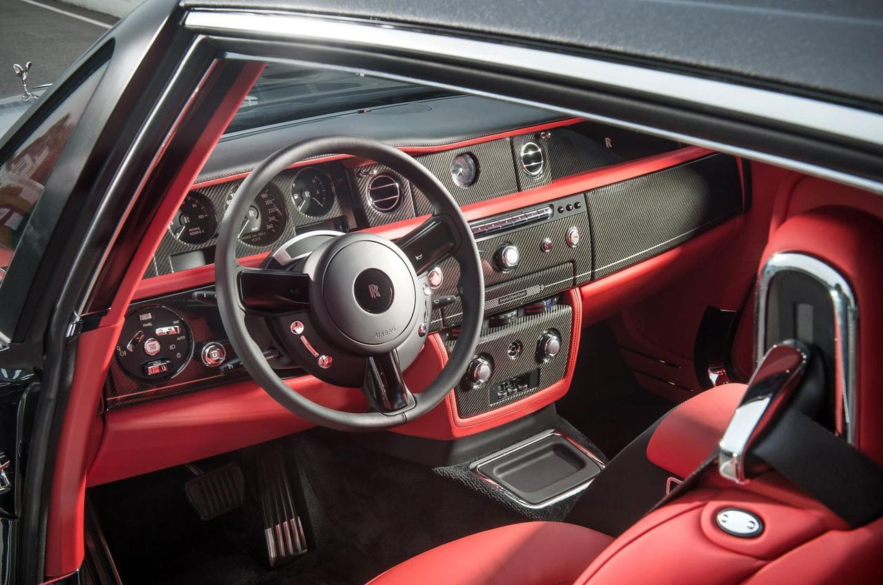 El cuero rojo contrasta de manera adecuada con un volante también negro y una instrumentación preciosista en la misma tonalidad. El recubrimiento del techo – headliner, en el argot automovilístico – es Alcantara de color rojo, que no pierde la tradicional inserción de fibra óptica para imitar a un cielo estrellado, detalle que según comentan fue introducido por Rolls-Royce especialmente pensando en Oriente Medio. A nivel de mecánica, se conserva el motor 6.75 V12 de 475 CV de potencia.
