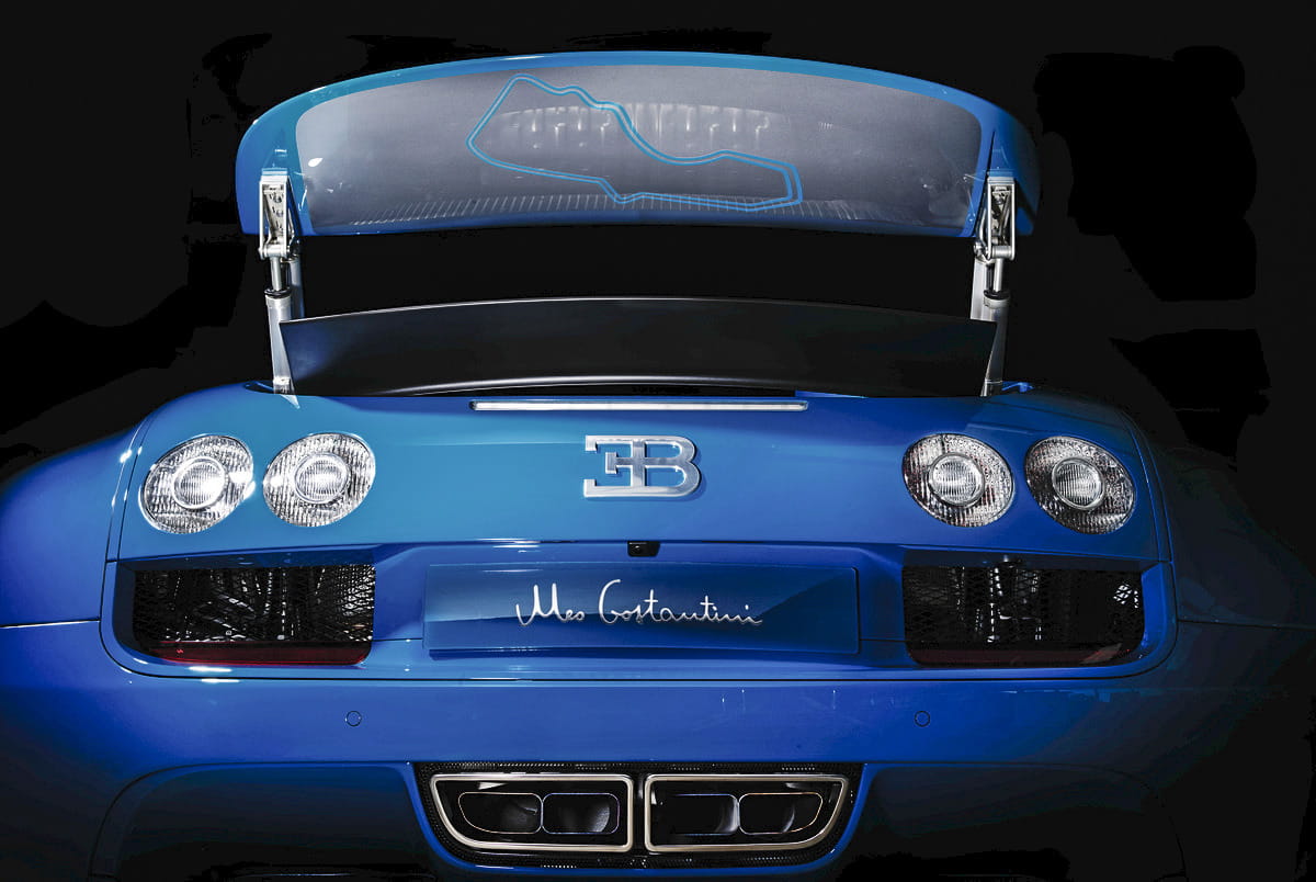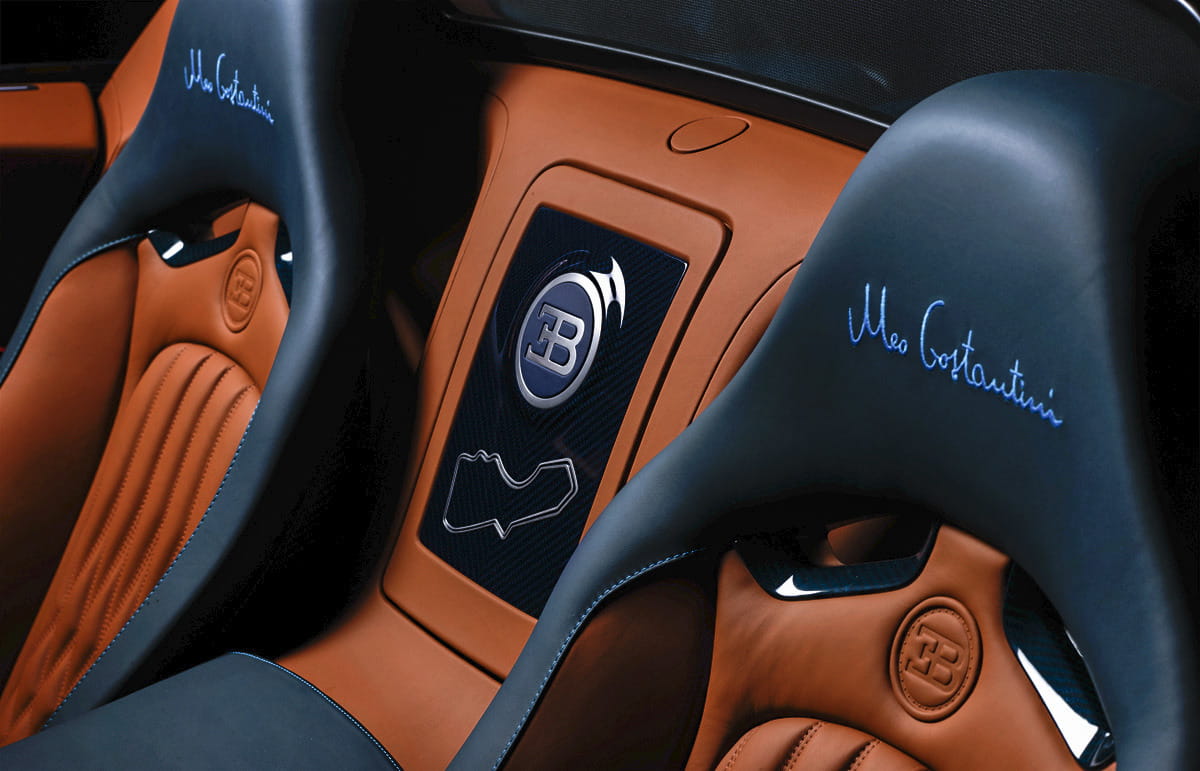 En su memoria nace el Bugatti Legend “Meo Constantini”, una edición muy exclusiva del Bugatti Veyron 16.4 Grand Sport Vitesse que costará la friolera de 2,09 millones de euros (sin transporte y sin impuestos). Como en el resto de Bugatti Legends, incluidos el Legend Jean Bugatti y el Legend Wimille, el de Meo Constantini solo se producirá en una tirada limitada a tres unidades. En su decoración Bugatti ha recurrido a uno de sus colores favoritos, el azul, protagonista de la mayoría de los paneles de la carrocería y los tintes de la fibra de carbono pulimentada que contrastan con el aluminio pulido de las puertas y las aletas delanteras.