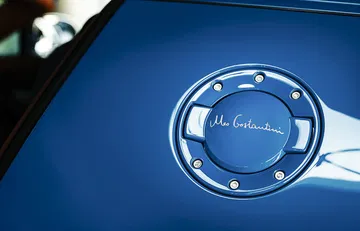 Las referencias a Meo Constantini y a la Targa Florio son constantes. La firma del piloto aparece en el alféizar, en el reposacabezas y en la tapa del depósito de combustible, mientras que la silueta de la carrera siciliana se ha dibujado en el reposabrazos y bajo el alerón móvil, apreciándose con todo lujo de detalles al desplegarse en una frenada intensa para contribuir en su función de freno aerodinámico.