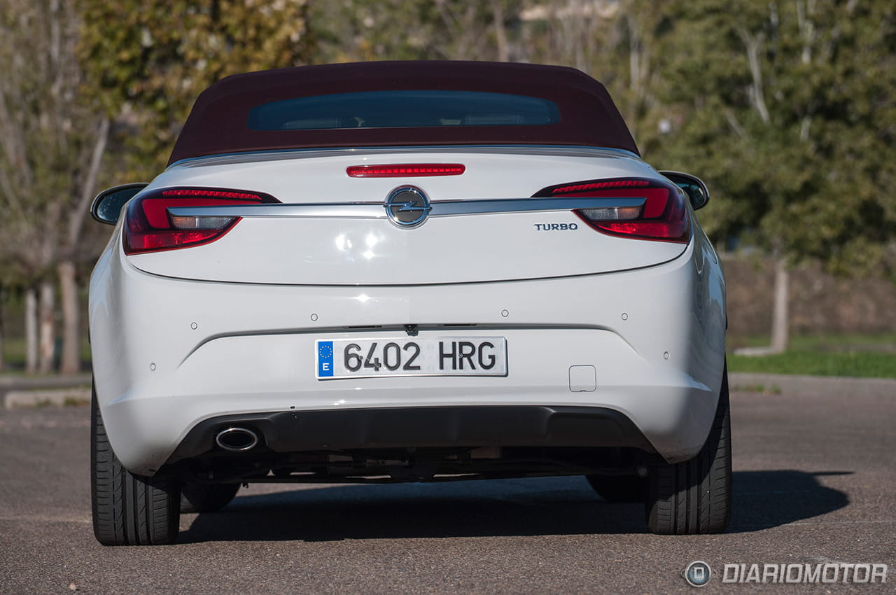 Hay que decir que este Opel Cabrio tiene una gran presencia y ya desde un primer vistazo inicial nos recuerda que el descapotable de Opel ya no es un compacto, sus dimensiones delatan su naturaleza. Destaca su cara de Insignia, su diseño musculoso con un capó abultado, el aspecto de las defensas y detalles como la forma del área en el que se sitúan los faros antiniebla, el voladizo en la zaga y su elegante techo de lona esculpido a modo de extensión de la carrocería.