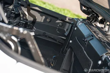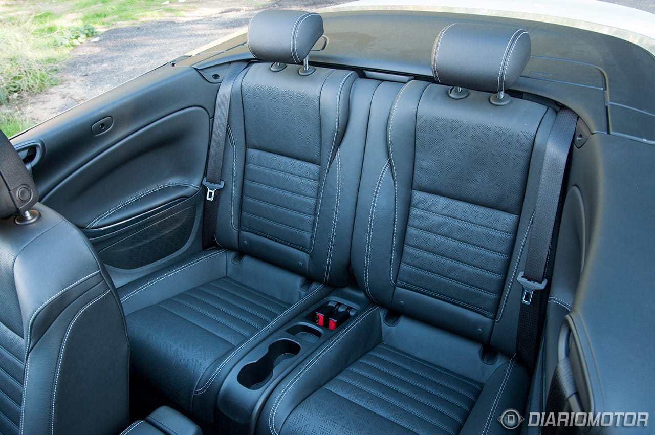 Con la capota cerrada basta inclinar la bandeja móvil para extender el volumen de carga a 380 litros, una capacidad nada desdeñable y superior a la que ofrecen la mayoría de descapotables. Por si no fuera poco los respaldos de las plazas traseras son abatibles en dos piezas al 50%. En ese espacio se encuentra la bolsa en la que se guarda el cortavientos y si retiramos esta podemos extender el maletero y alojar objetos muy largos, por ejemplo unos esquíes o una tabla de snowboard.