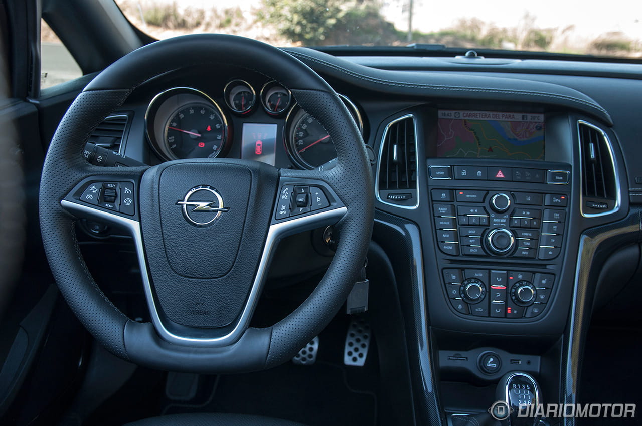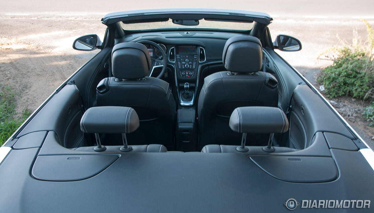 El puesto de conducción del Opel Cabrio nada tiene que envidiar al del Insignia. Eché en falta unos ajustes más deportivos, por ejemplo una posición más baja para la base del asiento, pero este Cabrio ha sido concebido para gozar de un puesto de conducción más propio de una gran berlina que de un coupé deportivo. Para un conductor de complexión media y 1,70 de altura, con la base del asiento en su posición más baja, la línea de ventanillas queda un poco alta. Se agradecen algunos detalles como la memoria de los asientos al abatir los respaldos para acceder a las plazas traseras y un sistema eléctrico que acerca el cinturón cuando plegamos el asiento para facilitar al conductor y a su acompañante el ajuste de este.