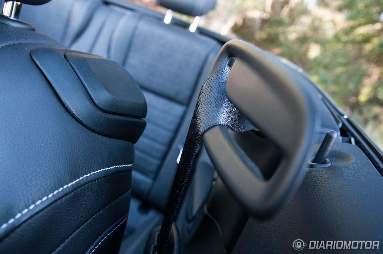 De serie cuenta con climatizador bizona y dada su condición de descapotable existen algunos extras muy interesantes para maximizar sus posibilidades descapotado independientemente de la temperatura exterior y de que circulemos por la urbe o por autopista. El deflector de viento (290 euros), que se pliega y se oculta tras el respaldo de los asientos traseros, anula estas plazas pero su montaje apenas lleva un minuto. Este elemento también se ofrece en el Pack Excellence (994 euros con precio en promoción actualmente) junto con faros adaptativos AFL+ y equipo multimedia y de navegación Navi 600.