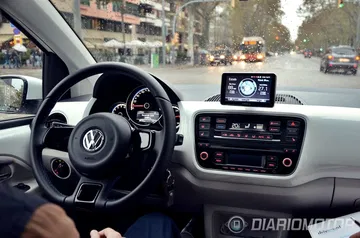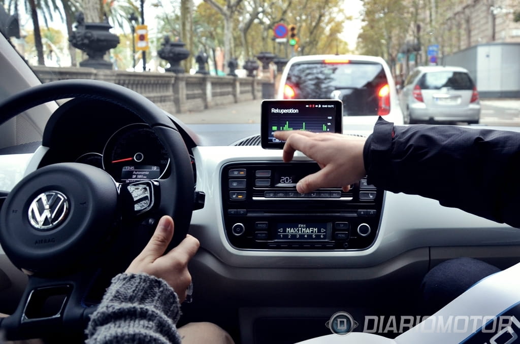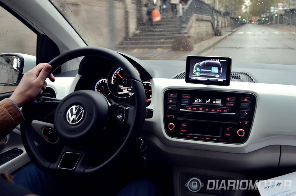 Hasta que no giras la llave del contacto en el Volkswagen e-Up!, pocas son las referencias que podemos encontrar para identificar que estamos ante un eléctrico a baterías. Una vez ya “arrancamos”, con cero vibraciones y cero ruidos, el cuadro de instrumentos específico y el dispositivo portátil firmado por Garmin con pantalla táctil 5” cobran vida advirtiéndonos de que algo bajo el capó ha cambiado. Tres modos de conducción: Normal, Eco y Eco+, y cinco programas de regeneración de frenada: D, D1, D2, D3 y B, serán a partir de aquí los principales protagonistas en la conducción del Volkswagen e-Up!.
