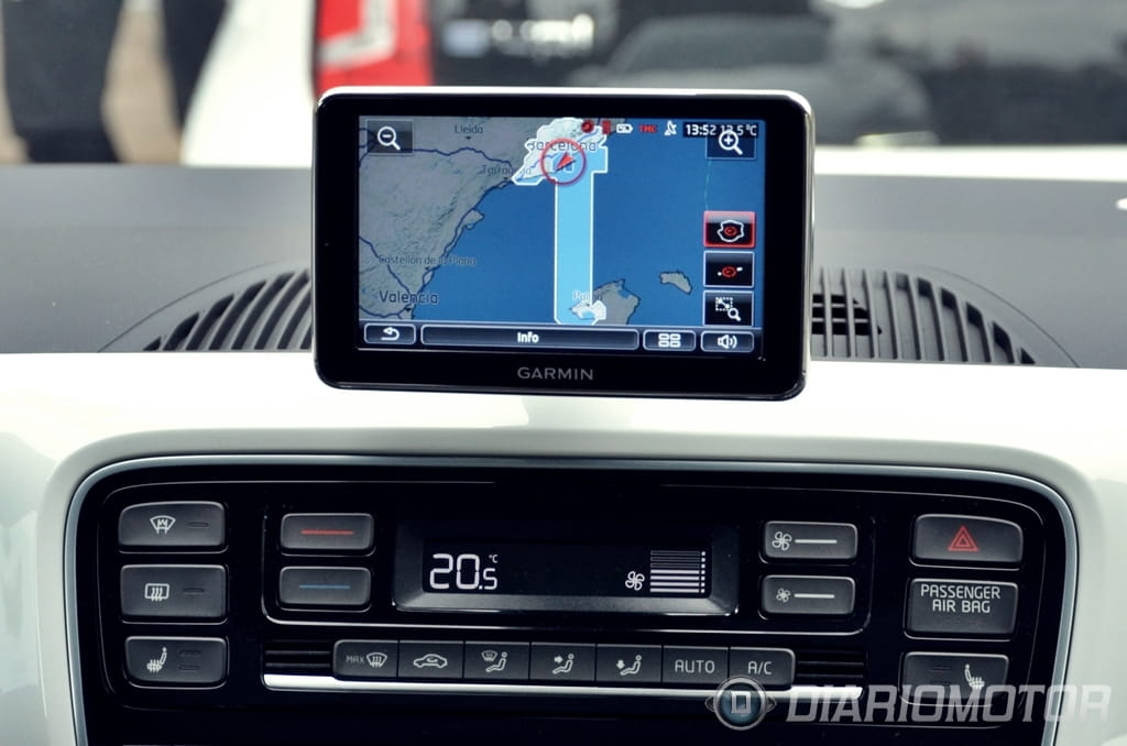 A todo este planteamiento técnico hay que añadir que el Volkswagen e-Up! cuenta con un dispositivo portátil firmado por Garmin que instala un entrenador virtual para mejorar la eficiencia de nuestra conducción, un sistema de navegación GPS con mapas inteligentes que muestran el alcance de nuestro e-Up! con la energía almacenada en las baterías o gráficos donde poder conocer en tiempo real la energía regenerada según los programas seleccionados.
