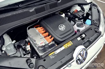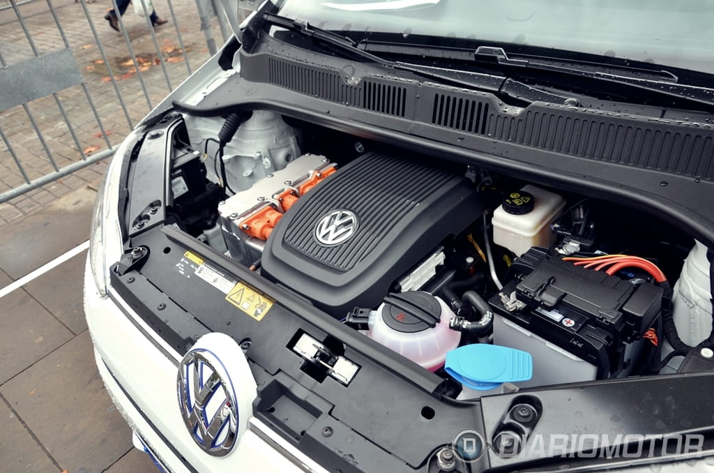 El propulsor eléctrico es capaz de entregar una potencia máxima de 82 CV acompañados de un par motor de 210 Nm disponibles desde cero revoluciones, apunta a juguete divertido. La velocidad máxima está autolimitada a 130 Km/h y el 0-100 Km/h cae en 12,4 segundos, encontrando una autonomía máxima de 160 Km por carga extraída de unas baterías de iones de Litio con capacidad para 18,7 kWh que suponen 230 Kg de los 1.140 Kg de peso que cifra en báscula el Volkswagen e-Up!. El acumulador energético está ubicado bajo el piso del habitáculo ofreciendo un centro de gravedad muy bajo.