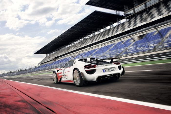 Equipado con un V8 de 4.6 litros y una potencia de 608 caballos acompañado por 2 mecánicas eléctricas que le confieren un total de 887 caballos, tracción total y la posibilidad de circular en modo totalmente eléctrico, el Porsche 918 Spyder consigue marcar, con el paquete Weissach (que rebaja el peso del conjunto en 36 kg), una aceleración de 2.6 segundos en el 0 a 100 km/h, 2 décimas menos que la primera cifra anunciada.