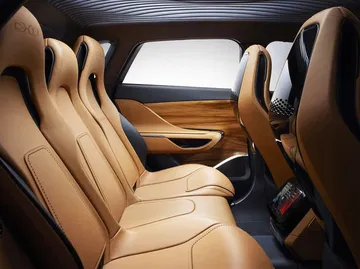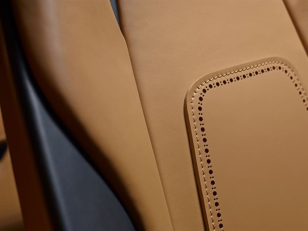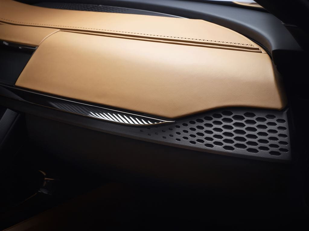Del azul eléctrico del primer modelo con el que debutó ante las cámaras, nos encontramos ahora con un tono marrón que da paso a un habitáculo donde sí, aún se aprecian los matices conceptuales, pero que se presenta ahora con una alta dosis de cuero marrón y madera perfectamente conjugados con el tono exterior de la carrocería. Además, este habitáculo ofrece la novedad de dejarnos ver la configuración de 5 asientos frente al primer interior que nos mostró la marca donde la configuración trasera era de 2 asientos individuales.