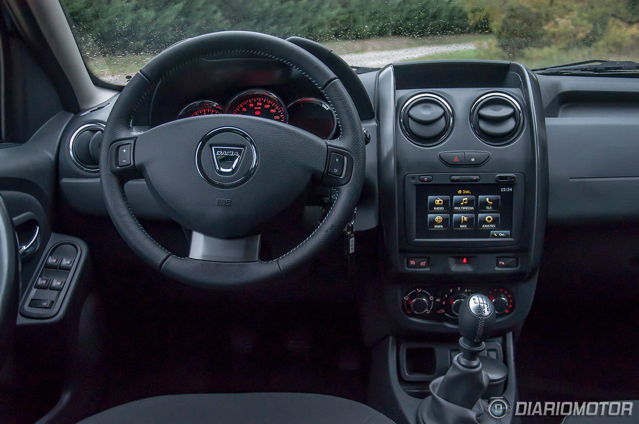 El Dacia Duster puede equipar un navegador integrado con pantalla táctil de 7”, que también hace las veces de equipo multimedia. Su posición dista mucho de ser intuitiva. En marcha tendremos que hacer caso de las indicaciones sonoras, puesto que su posición demasiado baja impide visualizar el mapa en marcha sin desviar demasiado la vista de la carretera. También hay que reconocer que la interfaz y la grafía, aunque sencilla, está muy anticuada y su tecnología sigue estando muy atrás con respecto al resto de la gama de Renault.