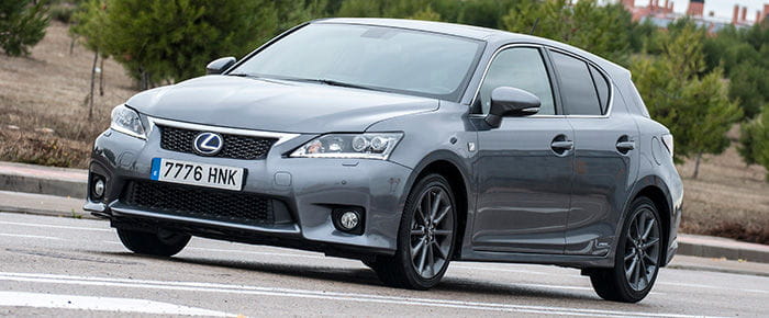 La elección del Lexus CT 200h F Sport queda supeditada a que queramos la cara más llamativa y agresiva de este compacto, equipado de serie con llantas de aleación de 17” de acabado negro metalizado, faldones deportivos, parrilla de nido de abeja, techo solar practicable, tapizados de tela símil Alcantara, volante deportivo, inserciones de aluminio, chasis deportivo con amortiguación lateral mejorada para compensar el balanceo y navegador HDD+. Su equipamiento es realmente completo.
