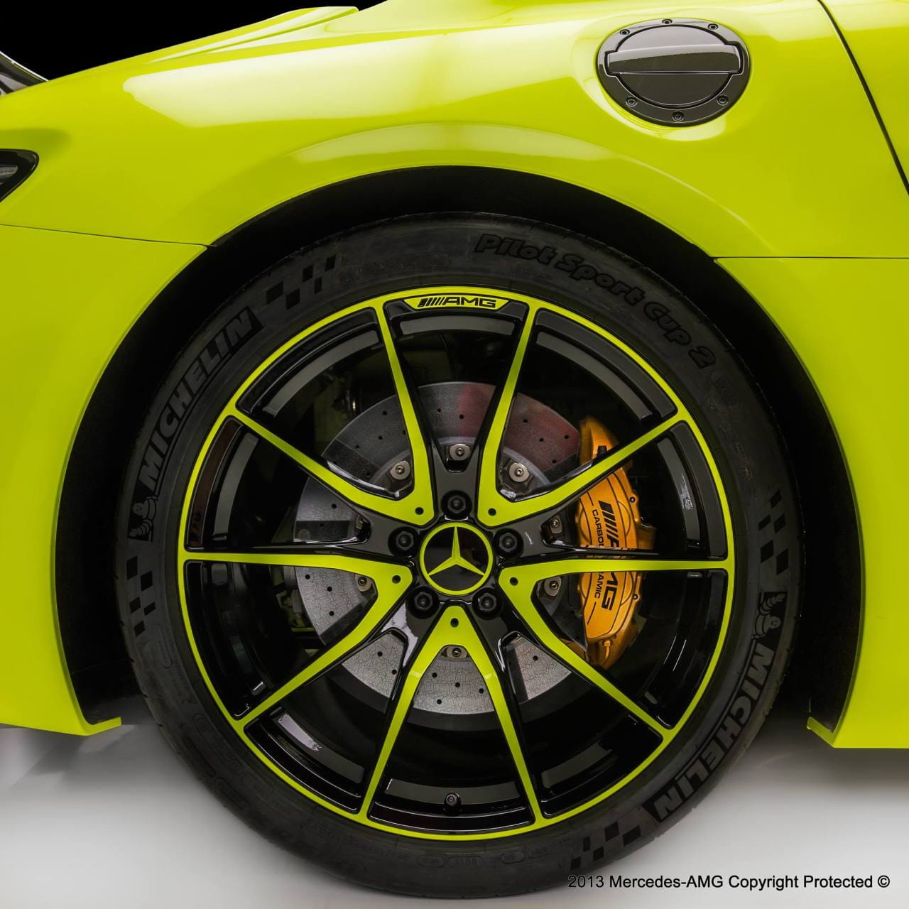 En el interior también se ha utilizado la misma temática de su carrocería, tonos negros y en amarillo verdoso para los tapizados de piel y las costuras, detalles también presentes en su zaga, el alerón trasero y la sustitución de los emblemas cromados de la estrella y la denominación de modelo por los correspondientes en negro mate.