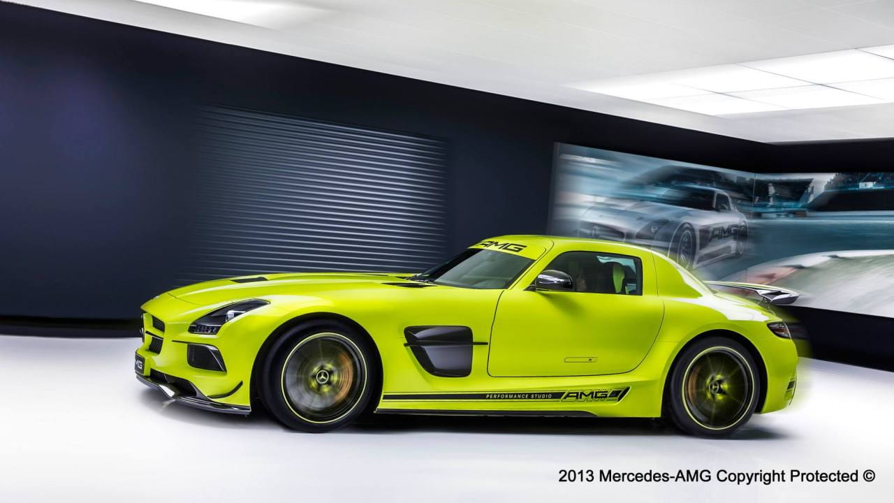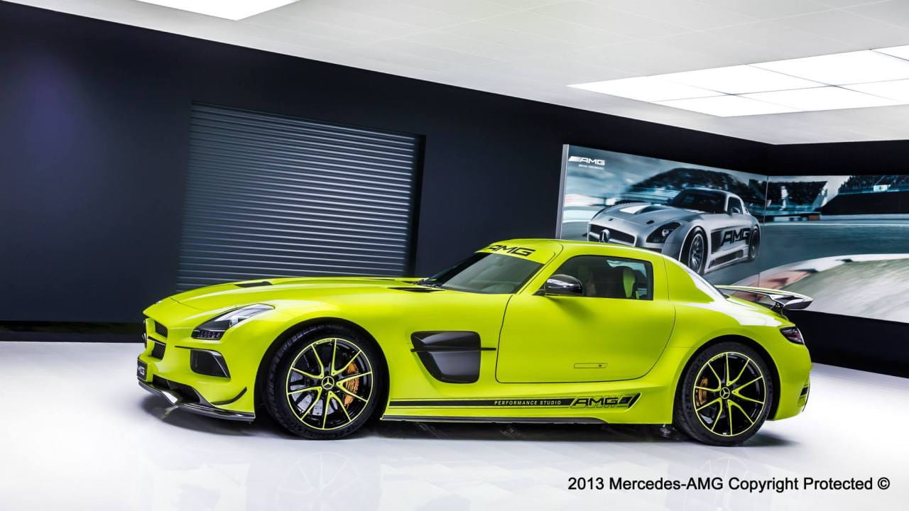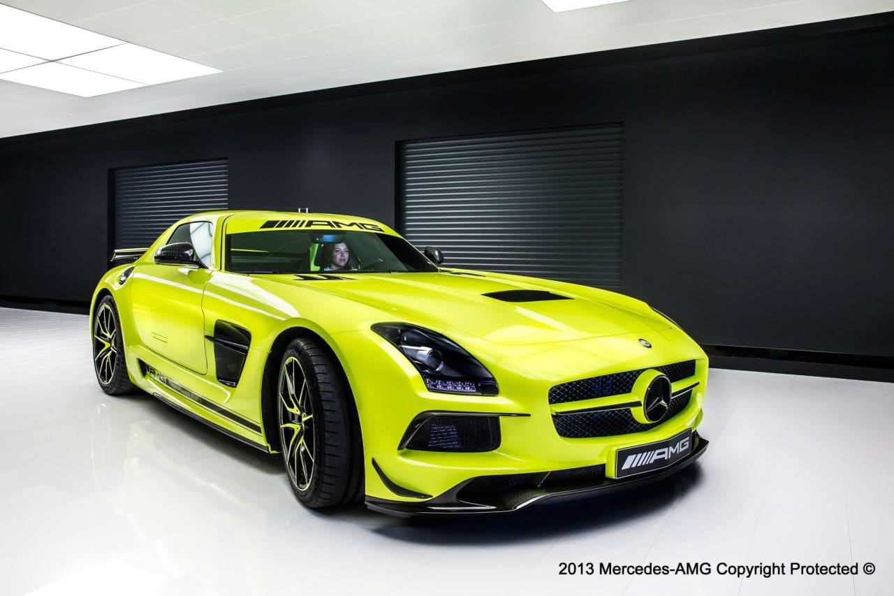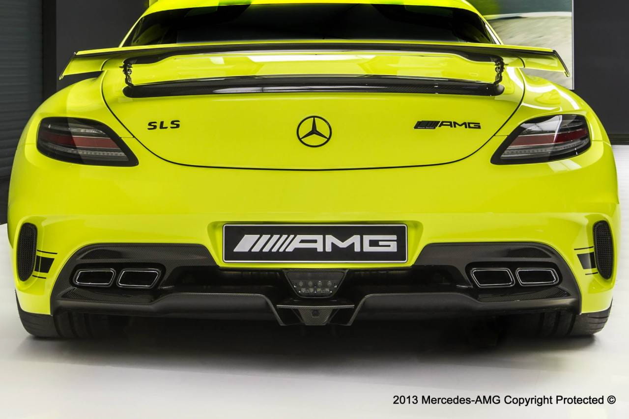Este Mercedes SLS AMG Coupé Black Series fue reservado por un cliente que tuvo la deferencia de permitirle a sus creadores realizar una sesión de fotografías de estudio para alegrarnos el inicio de este año 2014. Salta a la vista que el detalle más llamativo y exótico de esta pieza única reside en su acabado de carrocería, un amarillo fosforescente que está fuera del catálogo de Mercedes-Benz y, por lo tanto, ni tan siquiera tiene nombre, aunque obviamente haya sido inspirado en el acabado que se escogió en 2010 para la presentación de una primera iteración del SLS eléctrico, el E-Cell.