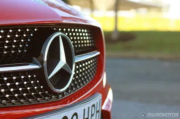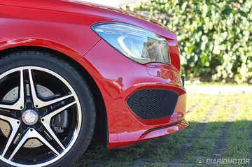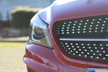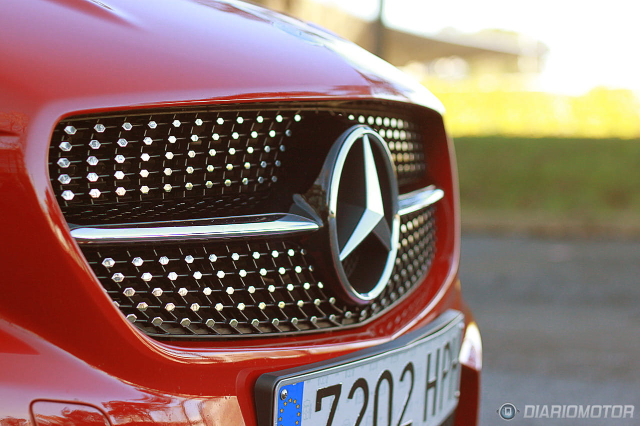 Empezando por lo más importante, que son las proporciones, el CLA comienza con un capó bastante grande y un gran voladizo delantero que el kit AMG se encarga de ensalzar todavía más. La enorme estrella de mercedes adornando el centro de la rejilla superior le da un aire mucho más deportivo que la antigua estrella sobre el capó, más clásica y conservadora. La rejilla va rematada con puntos cromados y en la parte inferior, negra, forma un panel tipo nido de abeja que redondea esa mandíbula poderosa.