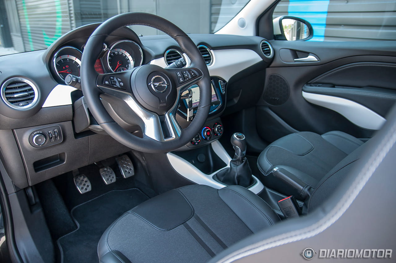 El ADAM JAM sirve de acceso desde 13.560 euros. Su equipamiento de serie es bastante correcto. Llantas de aleación de 16”, aire acondicionado, equipo de sonido de cinco altavoces con conexión Bluetooth y USB y faros antiniebla delanteros y traseros. El interior podremos decorarlo en negro, el acabado más sobrio, o en negro con detalles blancos.