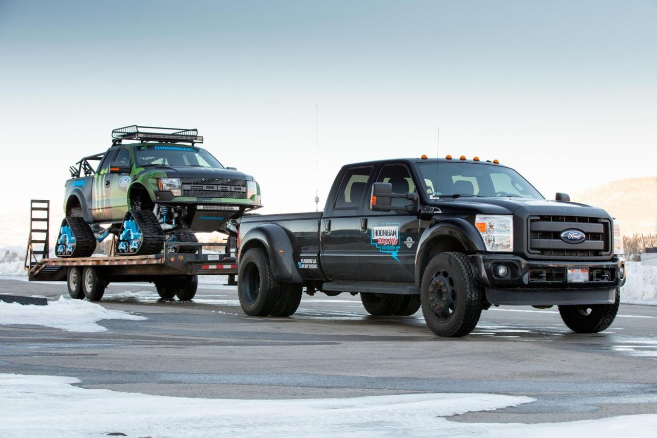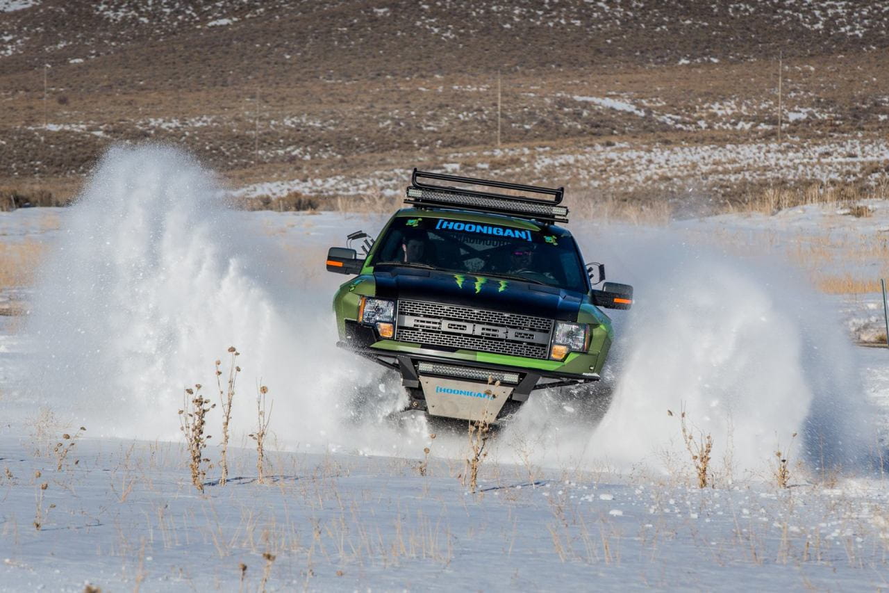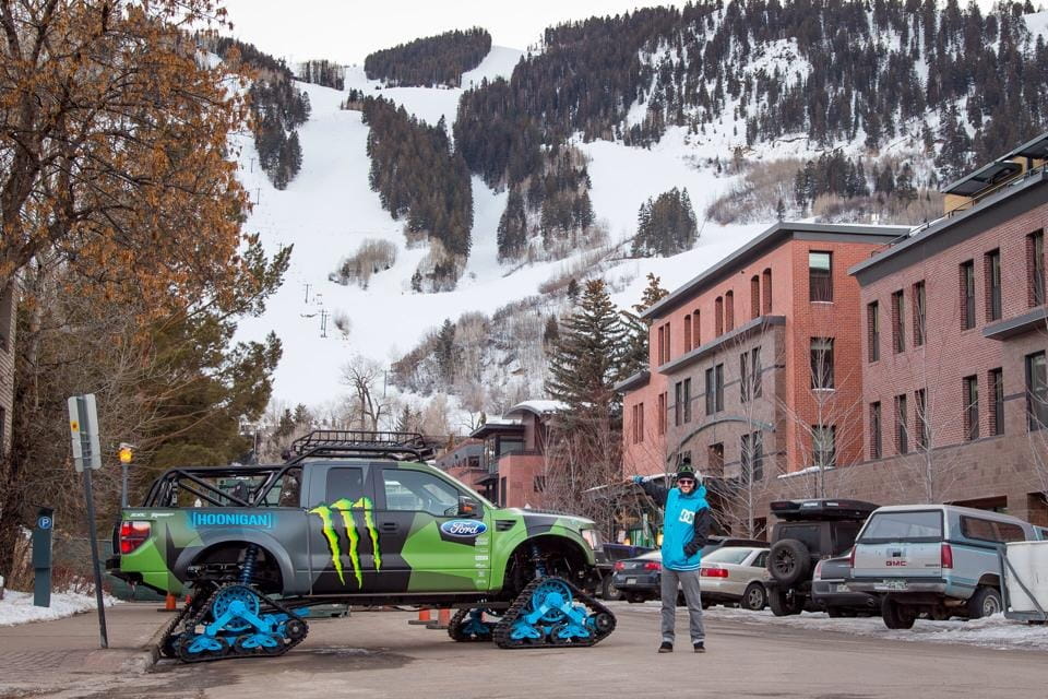 Aunque su participación en el WRC y sus virales de Youtube sean la cara más conocida de Ken Block, el snowboard sigue siendo una de las grandes pasiones del californiano. De ahí que la suma de X+Y den como resultado la construcción de uno de los pick-up más impresionantes que veremos esta semana, el Ford F-150 RaptorTRAX, un inmenso todoterreno en el que las ruedas se han sustituido por orugas para convertirlo en la camioneta de nieve – lo que los anglosajones denominan snowcat – más rápida que jamás se haya construido.