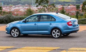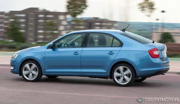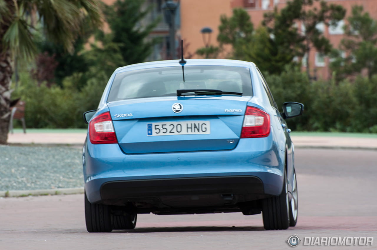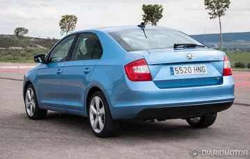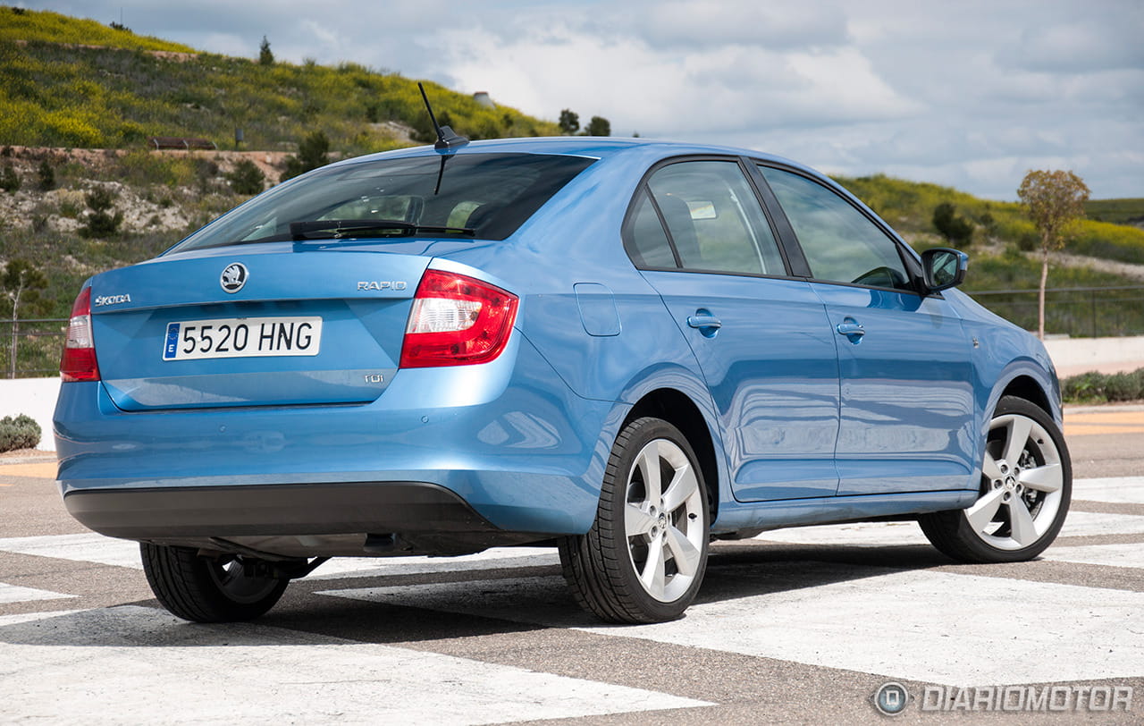 El Skoda Rapid también goza de una presencia fuerte motivada, sobre todo, por la imagen familiar que evoca y las reminiscencias a un modelo tan popular como el Octavia. Para un profano el Rapid es un Octavia en miniatura. El capó cuenta con una sección central abultada sobre la que se esculpe el nuevo emblema de Skoda y la zaga cuenta con pilotos de mayor tamaño que en el Toledo e integrados de forma que no están divididos por la apertura del portón. La matrícula, por cierto, se ha integrado más arriba, en la propia tapa del maletero.