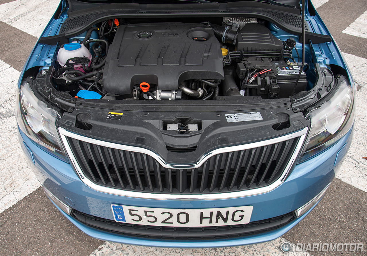 Llegado el momento en que tenemos que escoger el motor, las unidades que aparecen en estas fotos y que tuvimos ocasión de probar nos ofrecen dos alternativas bien diferentes. El Skoda Rapid venía equipado con un diésel de 105 CV y cambio manual, que es el motor que sin lugar a dudas recomendaríamos a cualquiera que busque un coche con unos consumos contenidos, no muy caro y relativa solvencia en carretera. Hace apenas unos días ya os hablábamos de este mismo motor en un envase no muy diferente, el del Skoda Spaceback.
