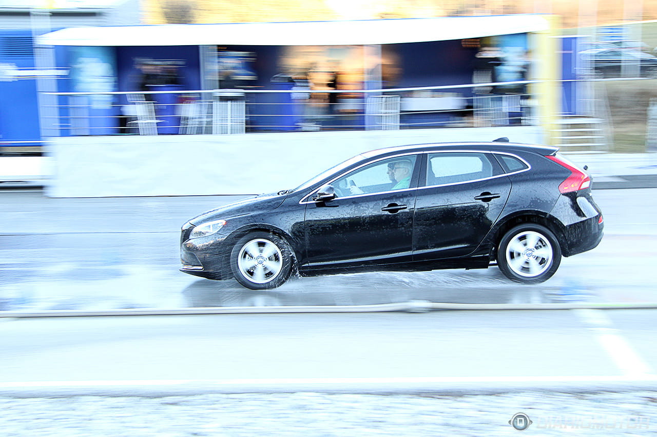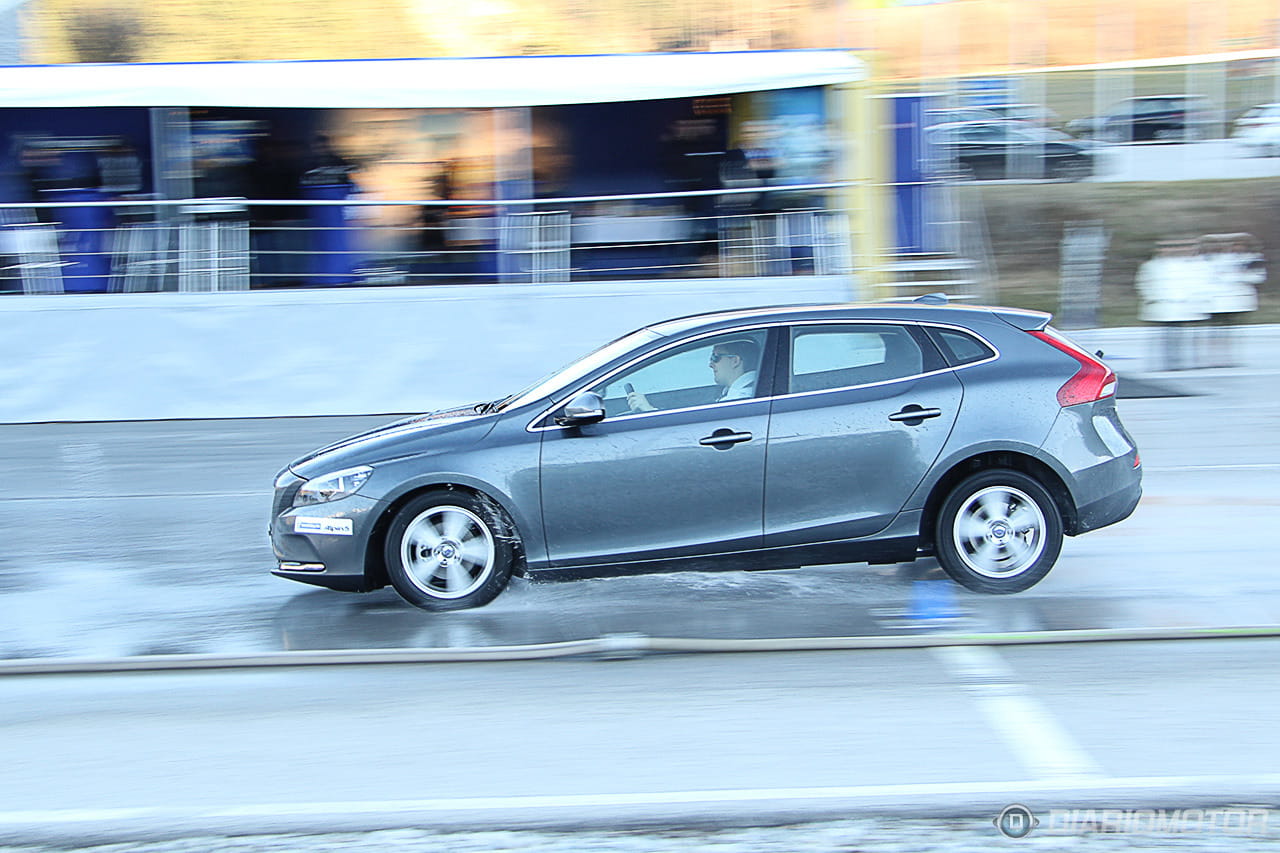 Con el BMW 320d GT y el Volvo V40 D2, que probamos a continuación por carretera, observamos el mismo comportamiento y la misma sensación de seguridad creciente, a medida que nos vamos acostumbrando a que el frío y la humedad aparentes no se corresponden con el excelente agarre del que disfrutamos en todo momento.