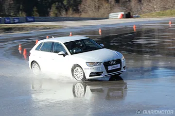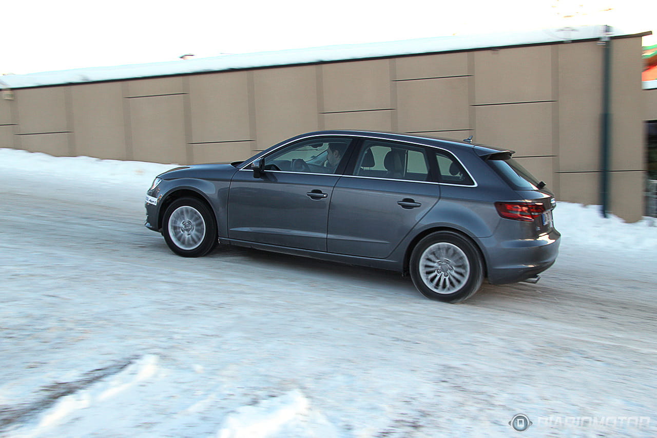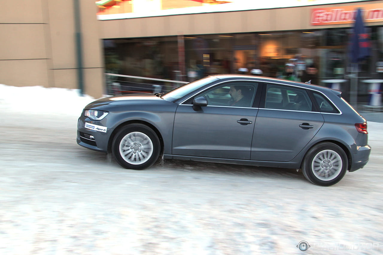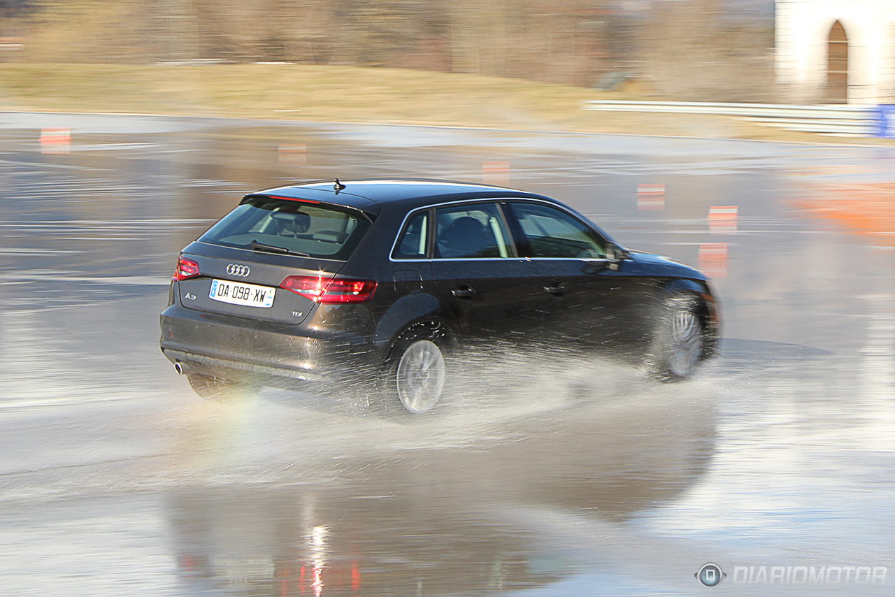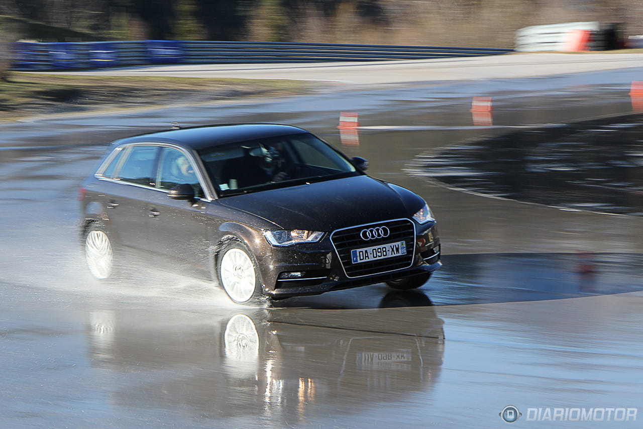 Comenzamos con el Audi A3, el menos potente de la colección. A pesar de haber viajado a Austria en pleno mes de febrero, parece mentira que las carreteras estén totalmente despejadas de nieve, pero el caso es que circulamos casi en todo momento sobre asfalto seco. Para probar la adherencia en frío, ascendemos a una estación de esquí en la que alcanzamos los -4oC.
