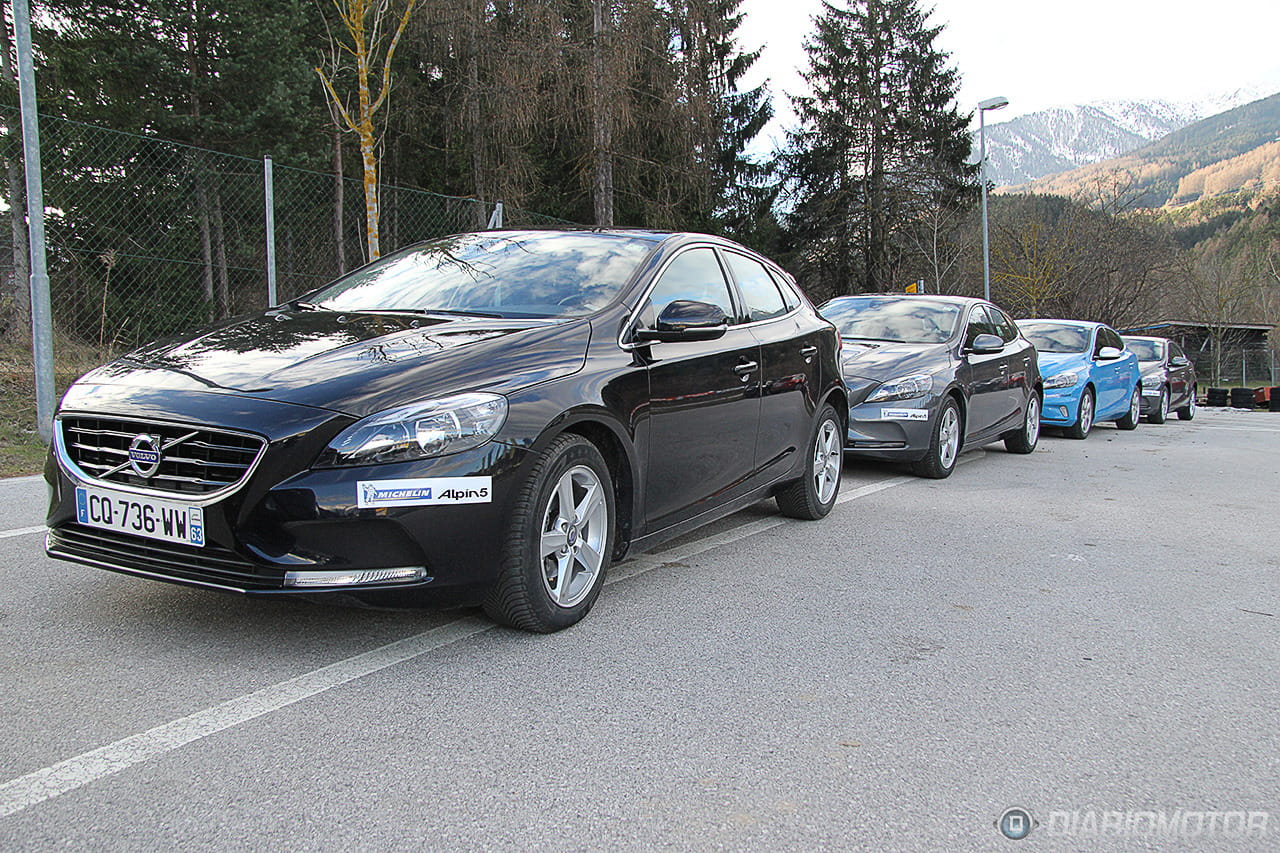La flota de vehículos preparada con los nuevos Alpin 5 contaba con tres modelos diferentes: Audi A3 TDI con 105 CV, tracción delantera y neumáticos Michelin Alpin 5 205/55R16, Volvo V40 D2 con 115 CV, tracción delantera y neumáticos Michelin Alpin 5 205/55R16 y BMW 320d GT con 184 CV, tracción trasera y neumáticos Michelin Alpin 5 225/55R17. Había alguna otra variante de motores, pero esos tres mencionados fueron los que pude conducir personalmente.