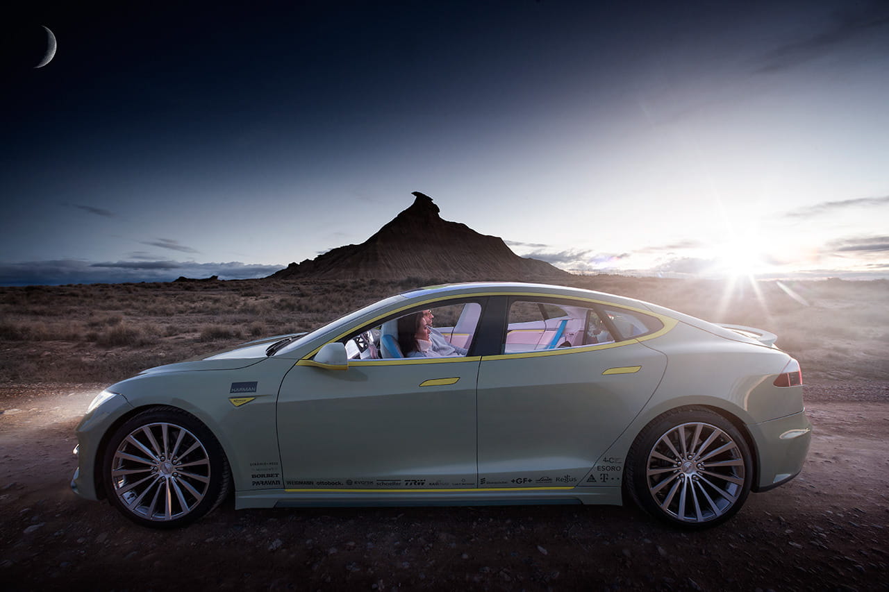 Tan impresionante y prometedora es la idea de este habitáculo de primera clase, que el hecho de que el último prototipo de Rinspeed, el Xchange, se haya construido sobre la base del eléctrico de moda, el Tesla Model S, es casi anecdótico.