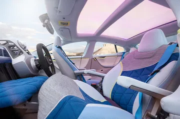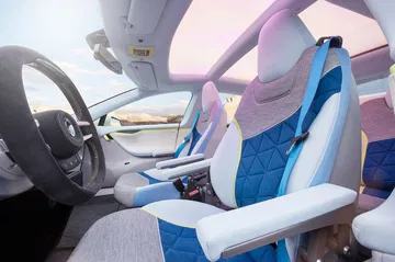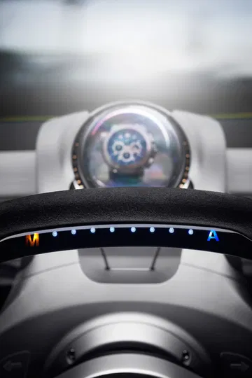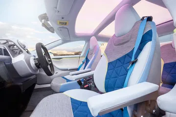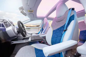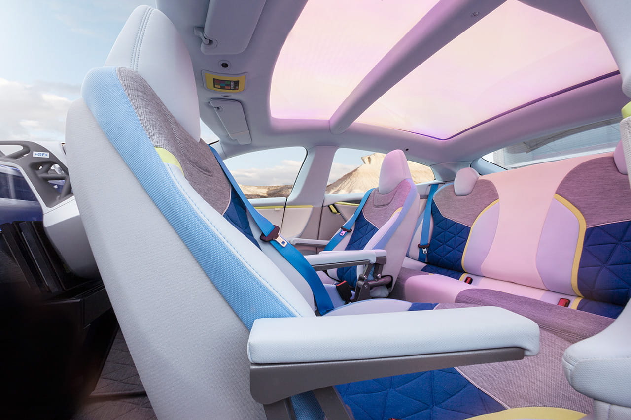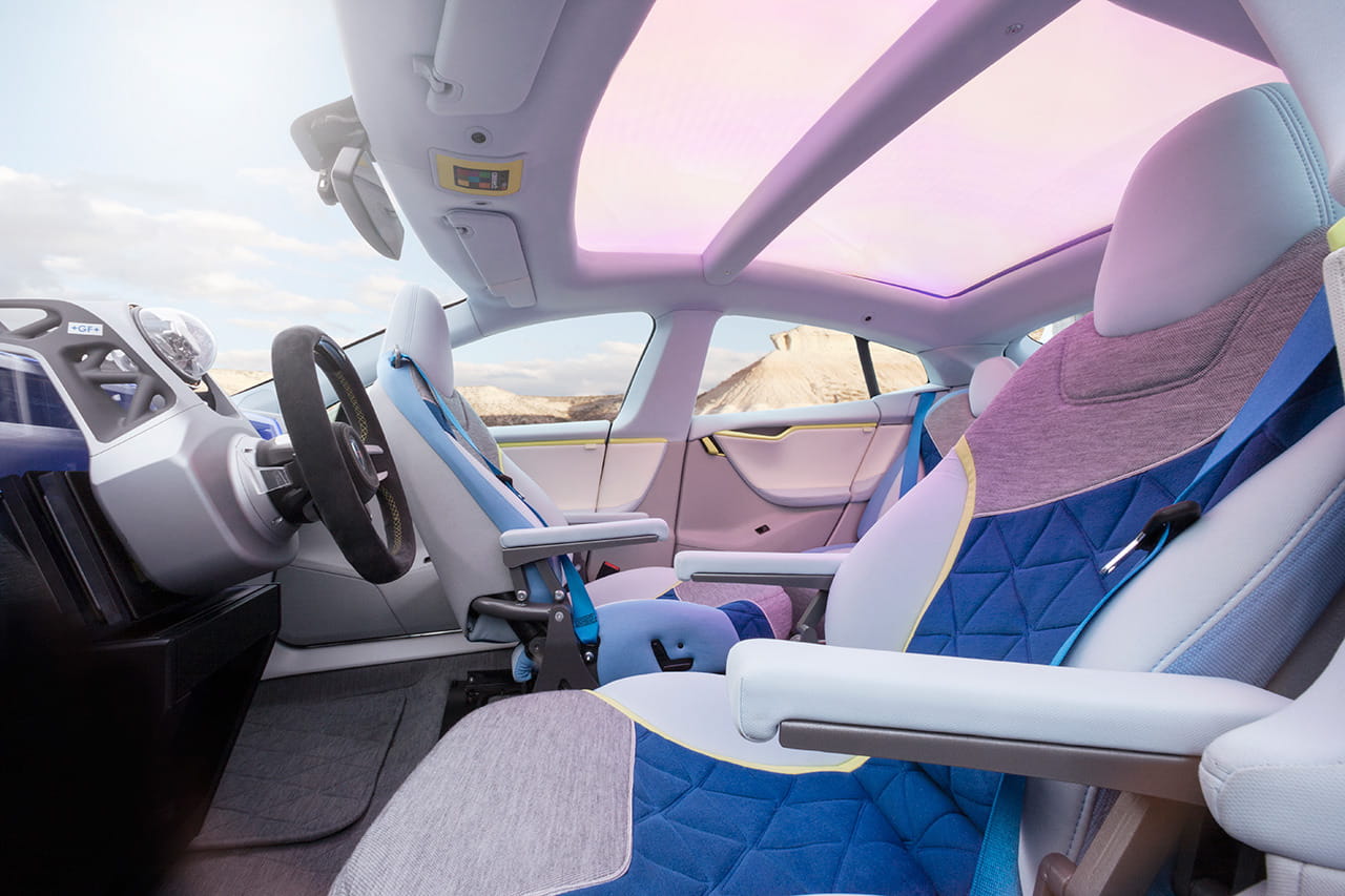 Por otro lado, e independientemente de que el mayor potencial de este coche estuviera en su capacidad autónoma, esa flexibilidad en la distribución de los asientos también ha permitido idear un puesto de conducción flexible. El volante cuenta con un soporte deslizante que nos permite situarlo en la posición que nos resulte más cómoda, conducir en un puesto central o incluso cambiarlo del lado izquierdo al derecho para adaptarlo a las carreteras con sentido de la marcha invertido.