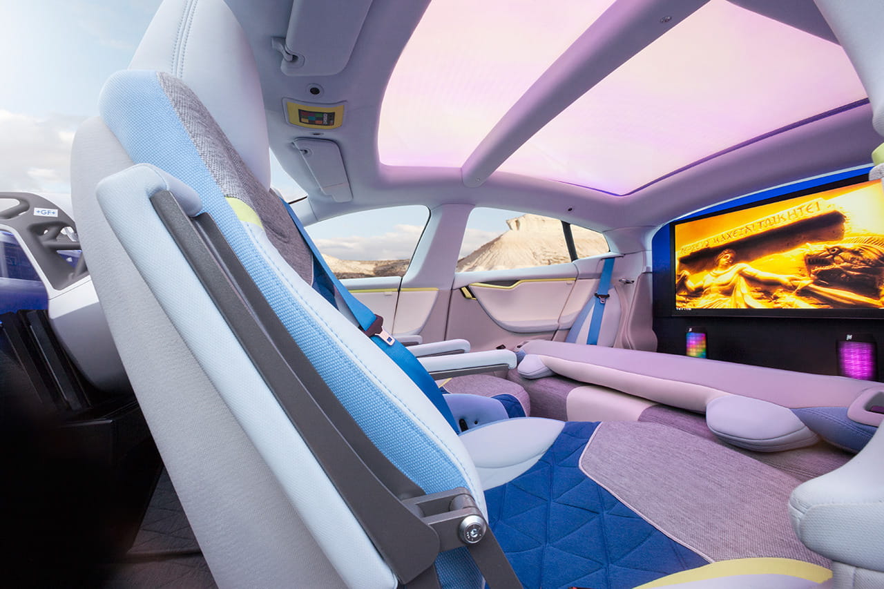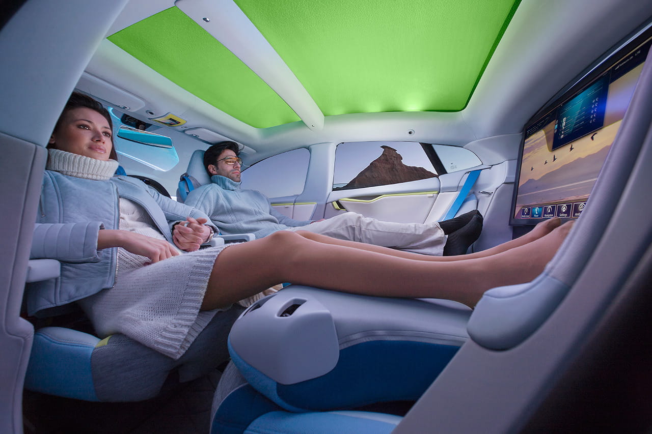 Esa es la idea que ha perseguido Rinspeed con su último prototipo, transformar el habitáculo de un coche en una cabina de primera clase, digna de un vuelo transoceánico en las mejores aerolíneas del mundo. Sin conductor, un coche puede optar por la flexibilidad de asientos que roten, se tumben por completo y nos permitan ver una película en una pantalla de 32” como la que tienes en la sala de estar. Puede parecer una locura, pero no lo es.