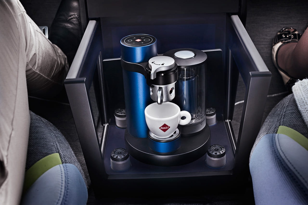 Azafata, por favor, ¿podría servirme un café macchiato?