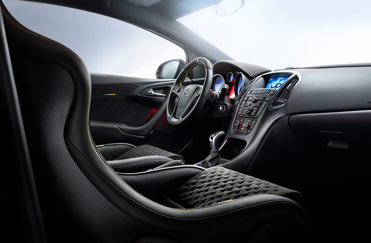 A bordo, se entremezcla un mundano salpicadero con la disposición de elementos de cualquier otro Astra y un equipo de entretenimiento a todo color, con inserciones de fibra de carbono, revestimientos de cuero y Alcantara, unos bucket Recaro con arneses de seis puntos y, atención, una jaula de seguridad que elimina cualquier esperanza en tener plazas traseras. Imaginamos que, de llegar a los concesionarios, Opel se plantearía si mantener algunos detalles de este prototipo, como eliminar la jaula de seguridad o al menos instalarla de manera opcional.