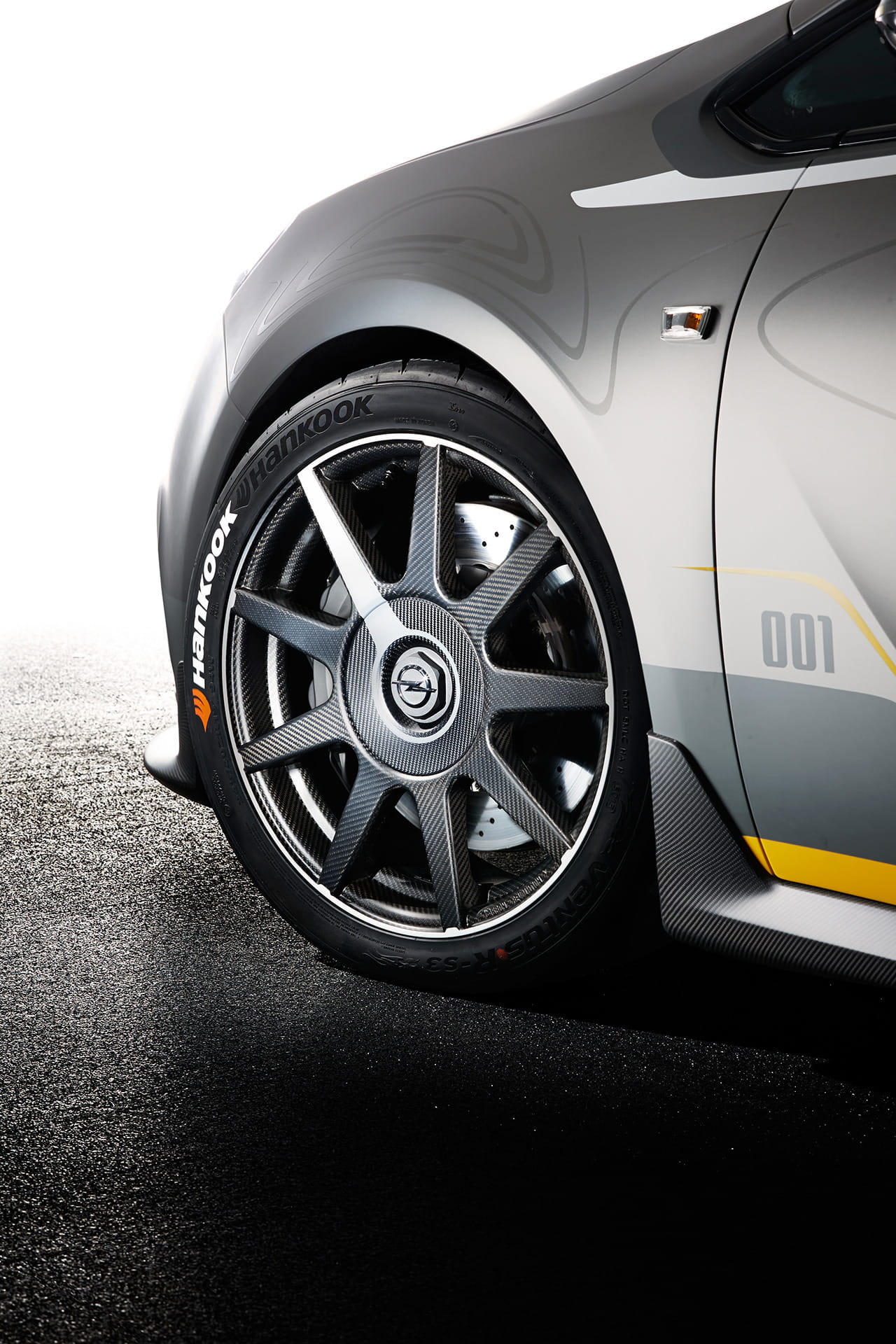 Opel apunta que habrían ahorrado 20 kilogramos únicamente sustituyendo unas llantas de aleación por estas de fibra de carbono en 19”. Que el techo solo pesa 2,6 kilogramos, frente a los 9,3 kilogramos de un techo de acero y que los soportes de los parachoques pesarían 800 gramos, mucho menos que los 2,2 kilogramos de esa misma pieza en acero.