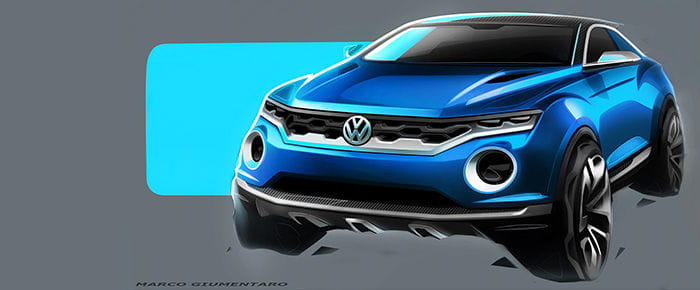 Así las cosas el Volkswagen T-ROC nos mostrará la evocadora imagen de un pequeño SUV construido sobre la plataforma modular MQB de Volkswagen, con pasos de rueda anchos, llantas de 19” y neumáticos muy anchos (245/45) y detalles tan peculiares como un techo rígido desmontable, al más puro estilo Jeep Wrangler.