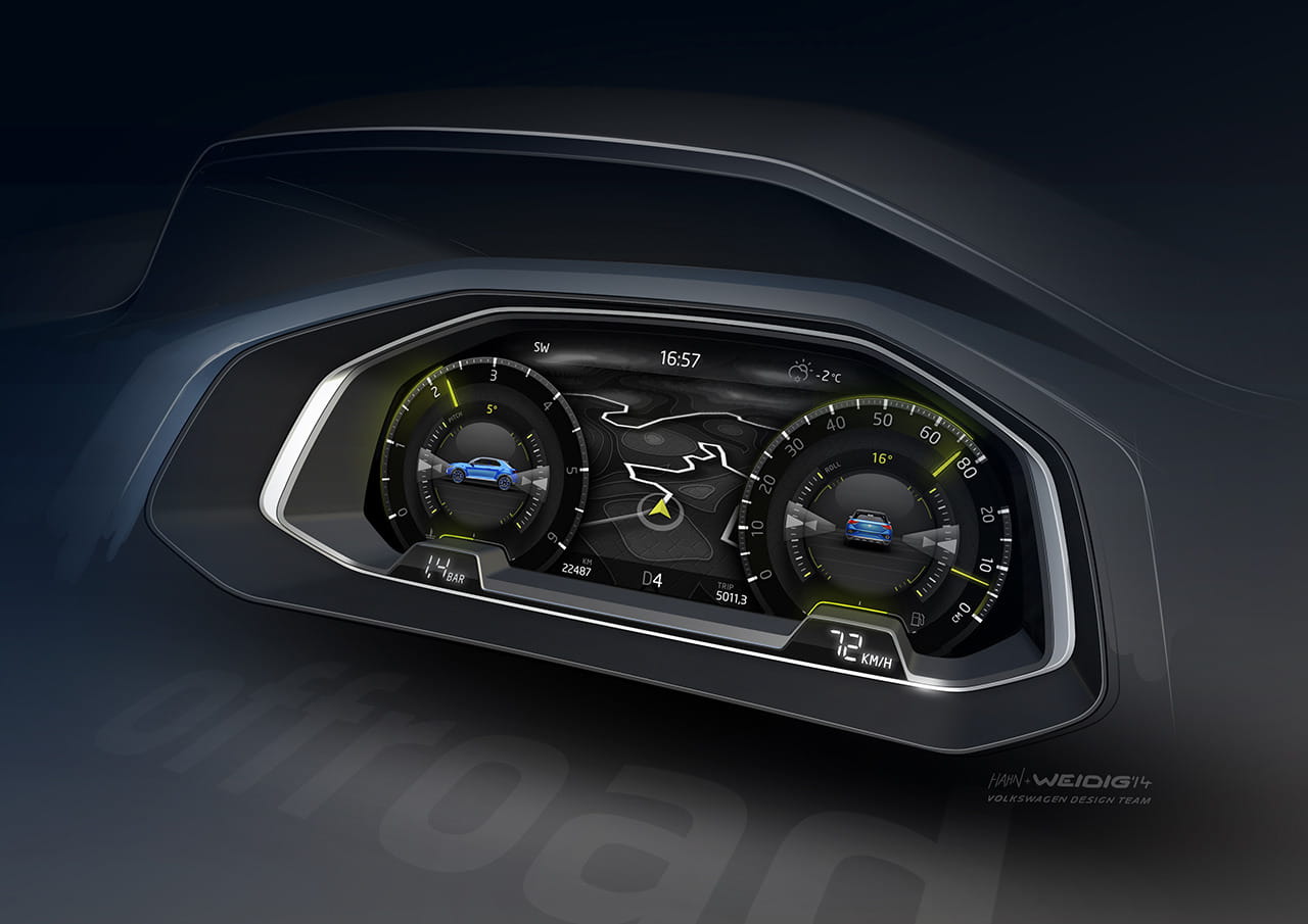 Volkswagen también ha mencionado que presentará detalles tecnológicos tan interesantes como un sistema de cámaras de aparcamiento, delantera y trasera, que también está pensado para echarnos una mano en escapadas de campo (por ejemplo para ayudarnos a maniobrar en lugares estrechos, o descensos pronunciados, contemplando el entorno del coche desde la pantalla del equipo de entretenimiento y sin bajarnos de este).