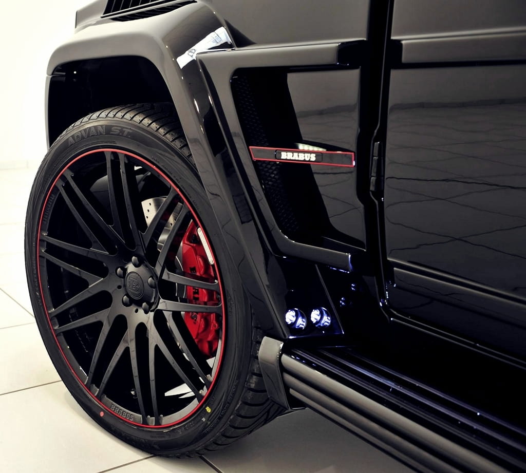 El plano estético no ha sido olvidado por Brabus, instalando en este Mercedes Clase G repleto de esteroides unas llantas de aleación de 23 pulgadas, nuevos paragolpes, múltiples aditamentos en puertas y pasos de rueda, entradas y canalizaciones de aire y la siempre obligada introducción en Brabus de numerosos puntos de luz a lo largo de toda la carrocería haciendo uso de la tecnología LED.