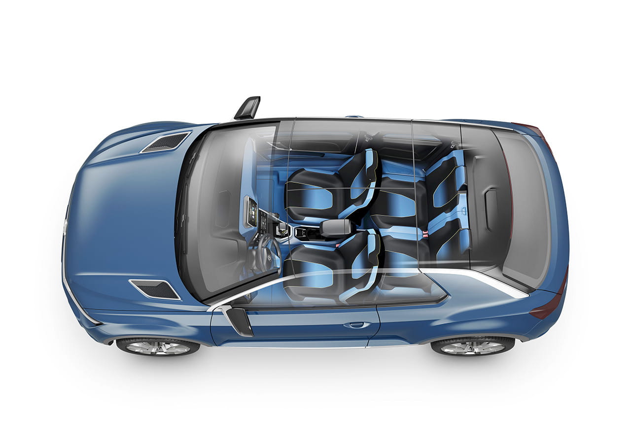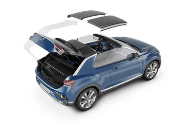 El Volkswagen T-ROC Concept es el heredero de una poblada serie de prototipos con enfoque todocamino y no menos exótico y futurista que los que le preceden. Bien podría ser un Volkswagen Scirocco con anabolizantes, más ancho, alto y con líneas muy marcadas, pero con tres puertas, el mismo enfoque de coupé y una bendita extravagancia, un techo de tipo targa con dos paneles rígidos desmontables que además encajan perfectamente en el maletero.