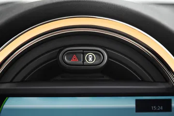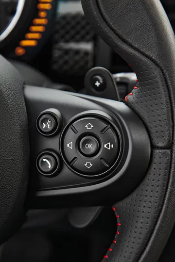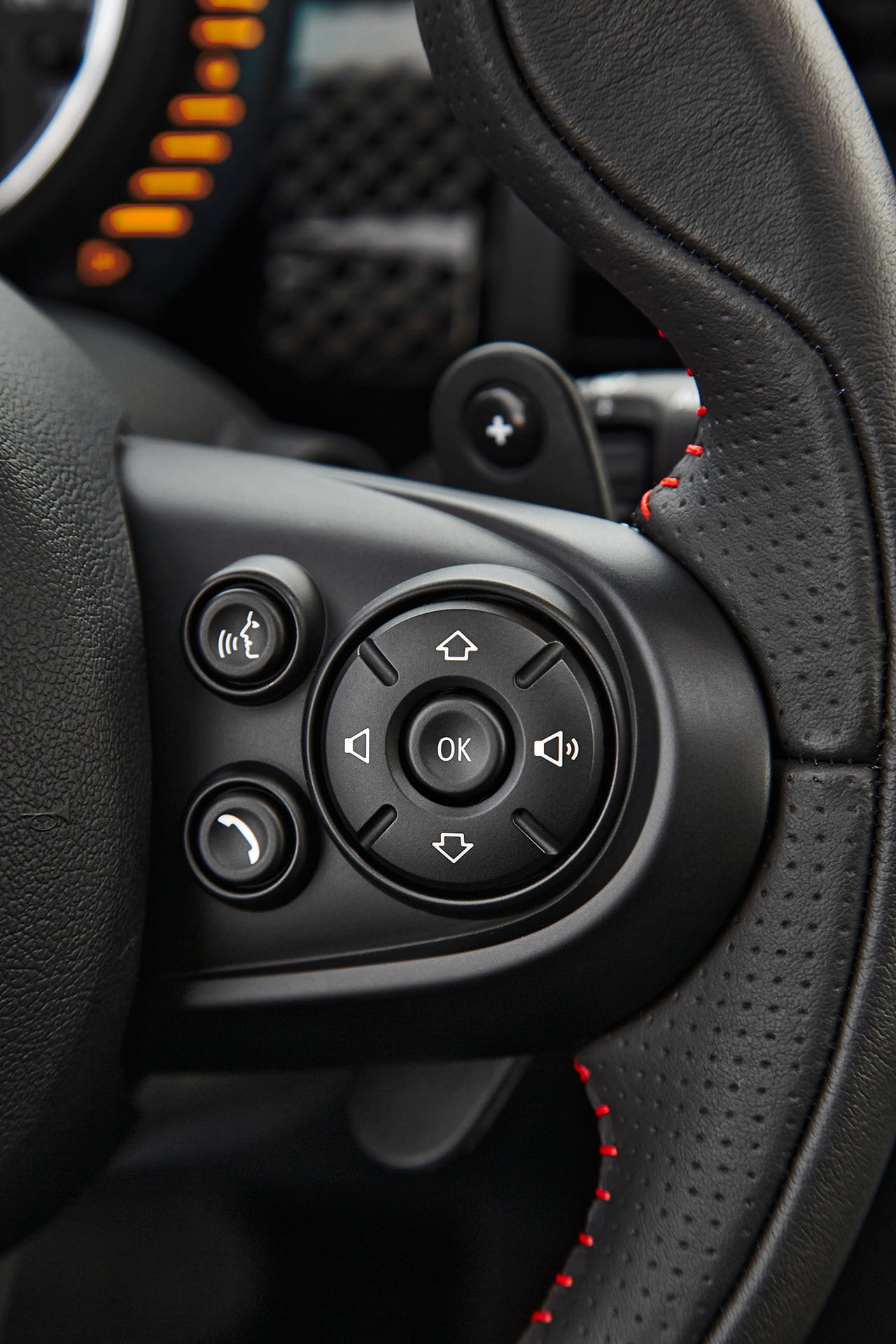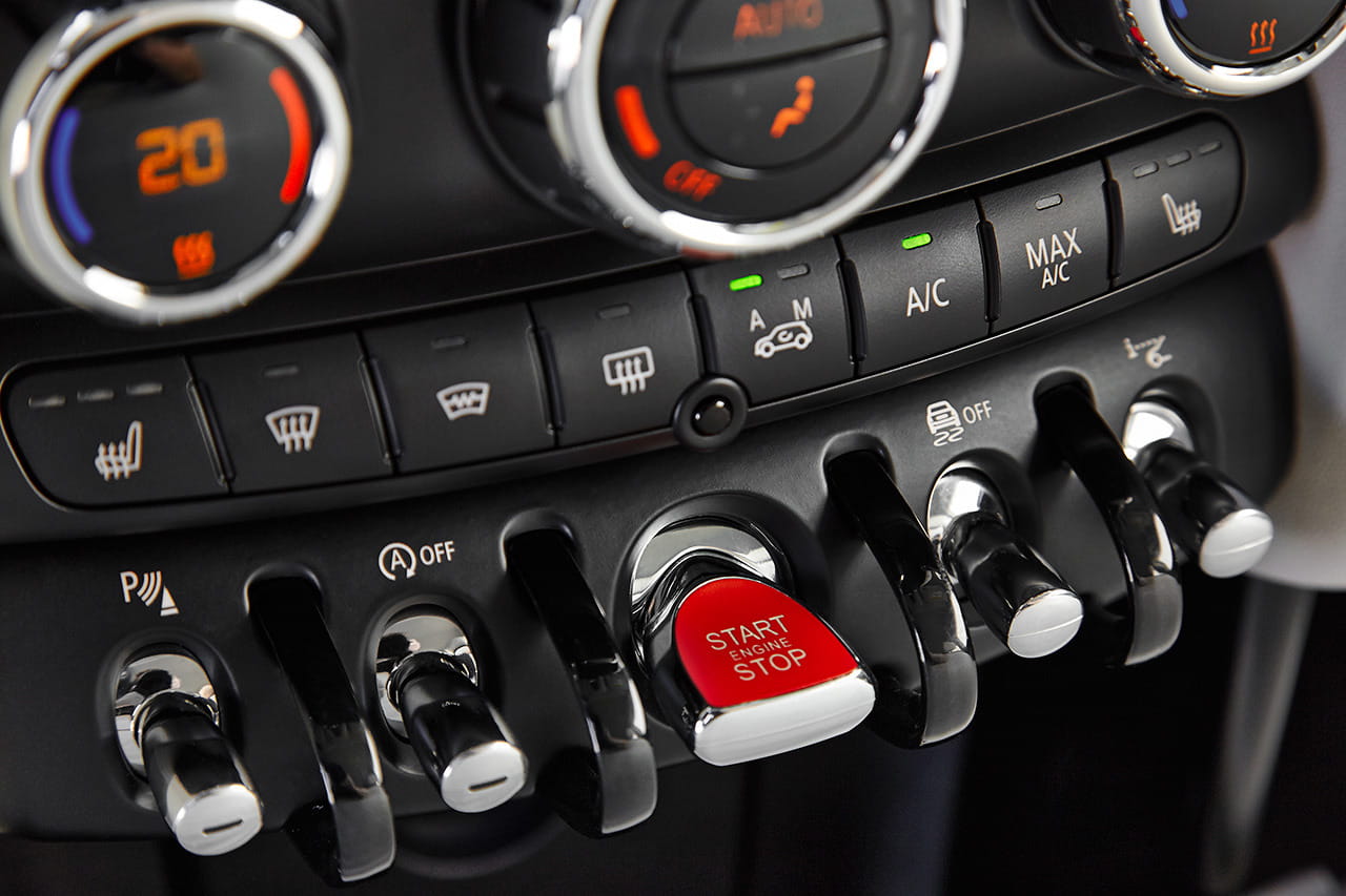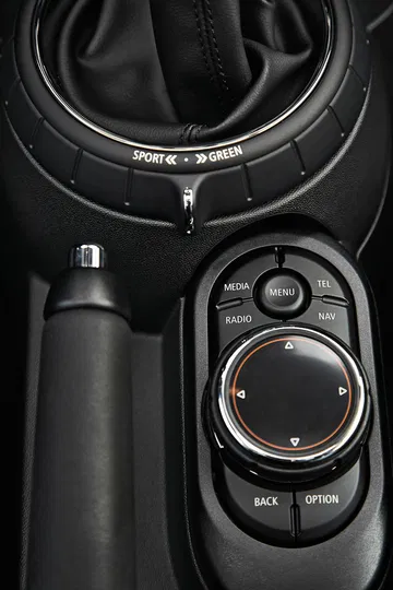 Nuestro ritual de iniciación comienza con el arranque. El sistema de llave inalámbrica de MINI ha permitido instalar una palanquita en la consola central, por detrás del pomo del cambio, con una iluminación de cortesía roja que nos da la bienvenida. Su posición no es nada intuitiva, pero sí práctica para salir a fondo y acortar el movimiento de nuestra mano derecha hacia el pomo de la palanca de cambios para engranar la primera marcha.