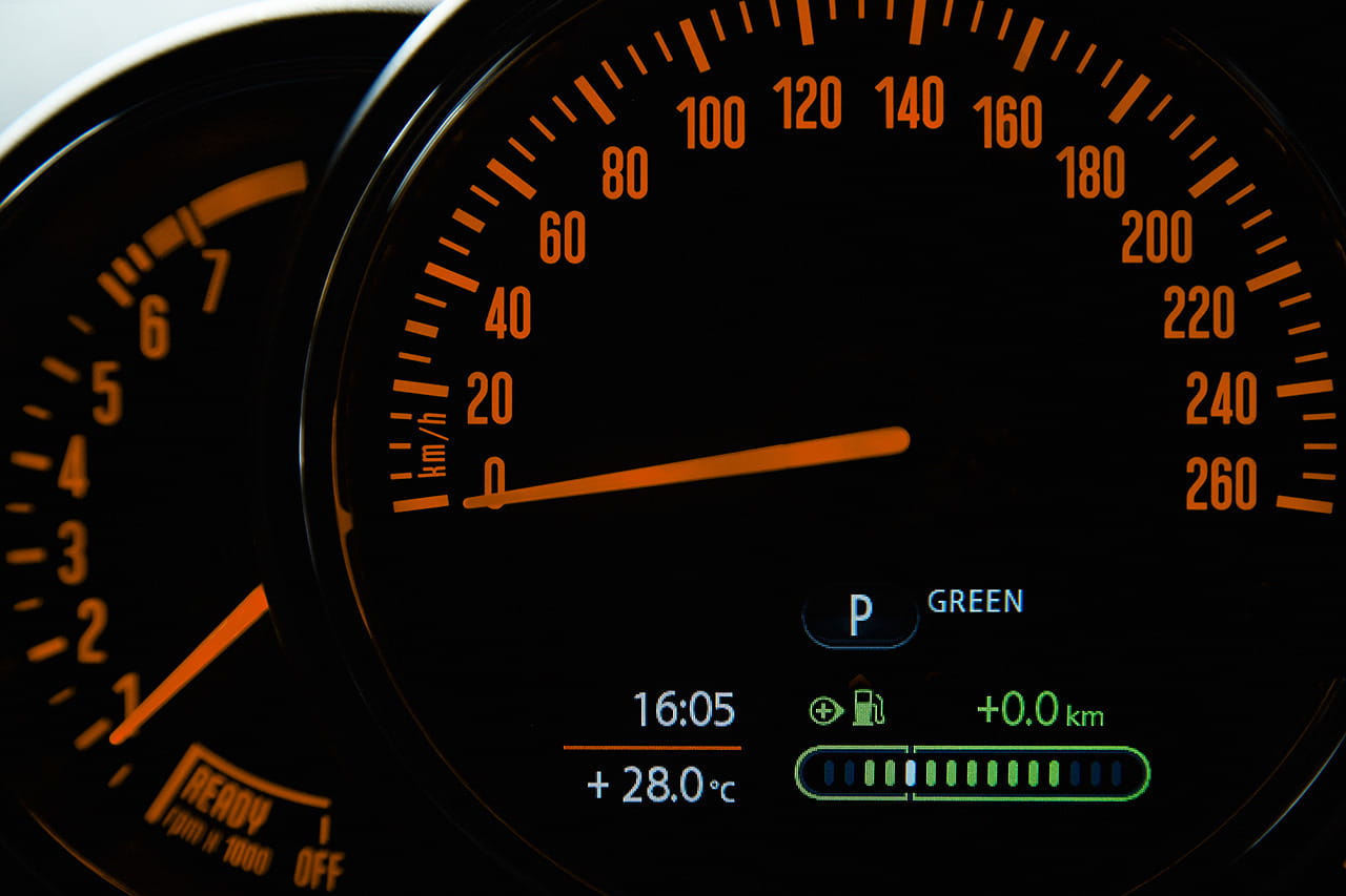 Otro detalle más. El velocímetro ha regresado a la posición natural (si es que alguna vez ha existido tal cosa) o al menos a la que cualquiera que no haya conducido sus predecesores se espera. El cuadro de mandos tras el volante incorpora el velocímetro, el cuentarrevoluciones, el ordenador de a bordo y el nivel del depósito de combustible.