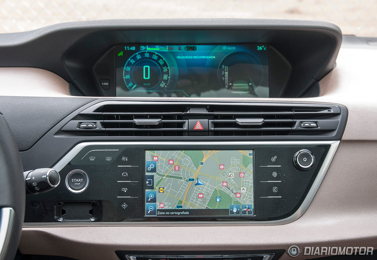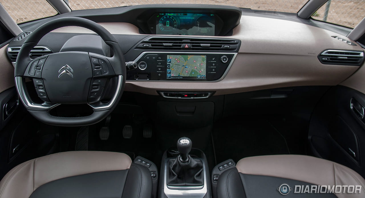 Nos lo llevamos con cambio manual de seis velocidades, aunque la alternativa automática se antoja realmente interesante. Esta última no ofrece un cambio automático al uso, sino lo que denominamos un cambio manual pilotado que engrana las marchas automáticamente y prescinde – obviamente – de pedal de embrague. Estos cambios no se caracterizan precisamente por ser confortables, lo cual nos genera dudas sobre que sea el más apropiado para un Citroën C4 Picasso. Citroën lo habría mejorado para que fuera más rápido y suave en la transición entre marchas. Nos lo apuntaremos para probarlo más adelante. Pero si por algo destaca este cambio ETG6, como otros de su naturaleza, es en que se trata de una alternativa robusta, fiable y económica. Si nos llevamos este e-HDi de 115 CV con cambio ETG6 solo tendremos que pagar 800 euros más que por el cambio manual.